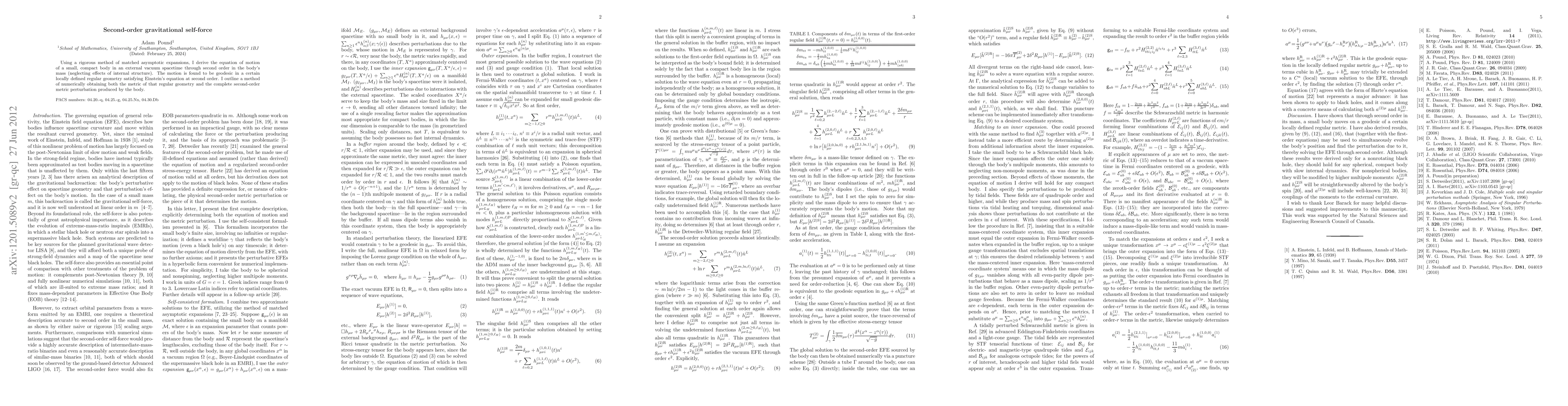 Researchers developed a method to calculate the motion of small bodies in spacetime using second-order gravitational self-force equations, finding that the motion follows geodesic paths in a locally defined geometry satisfying Einstein's equation.