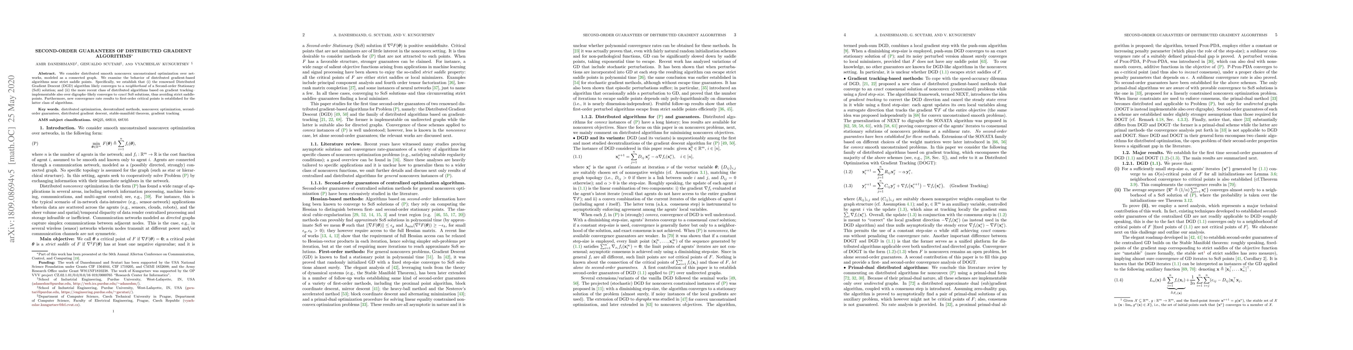 This paper investigates distributed gradient algorithms for smooth nonconvex optimization over networks, demonstrating that Distributed Gradient Descent (DGD) converges to a neighborhood of Second-order Stationary (SoS) solutions, while gradient-tracking algorithms converge to exact SoS solutions, avoiding strict saddle points, and provide new convergence rates to first-order critical points.