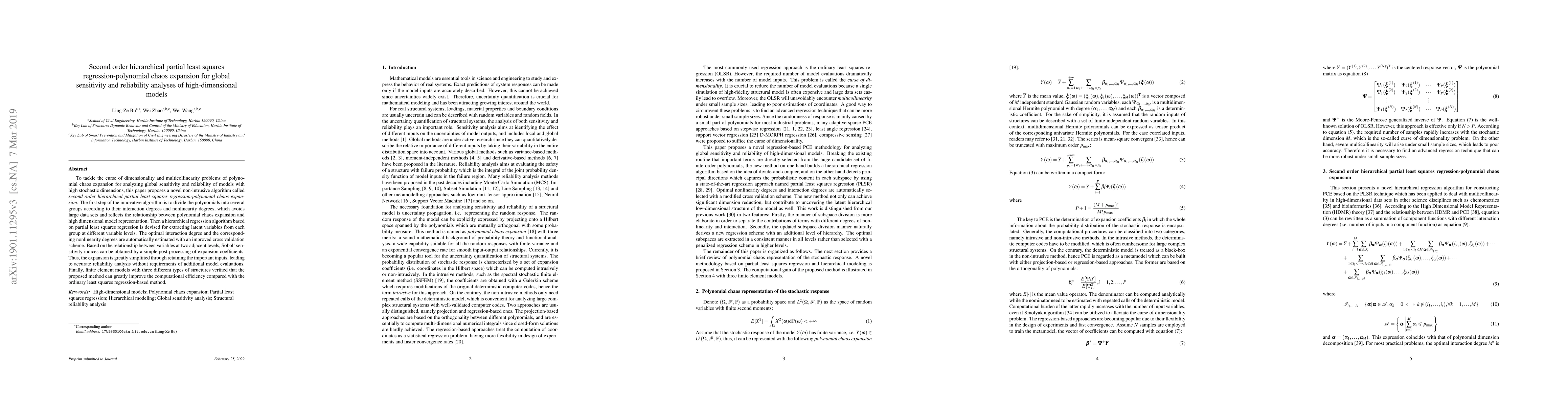This paper introduces a novel second order hierarchical partial least squares regression-polynomial chaos expansion algorithm to address high-dimensional model analysis, simplifying the process while maintaining accuracy and improving computational efficiency. The method groups polynomials by interaction and nonlinearity degrees, extracts latent variables via hierarchical regression, and computes sensitivity indices for reliable analysis.