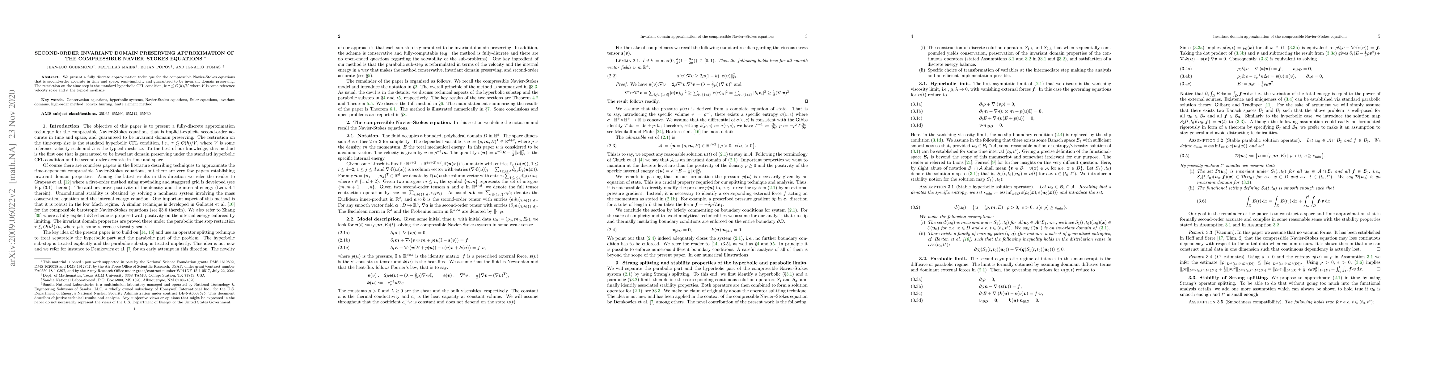 A new method for solving compressible Navier-Stokes equations is presented, achieving second-order accuracy in time and space while ensuring domain preservation and meeting the standard CFL condition.