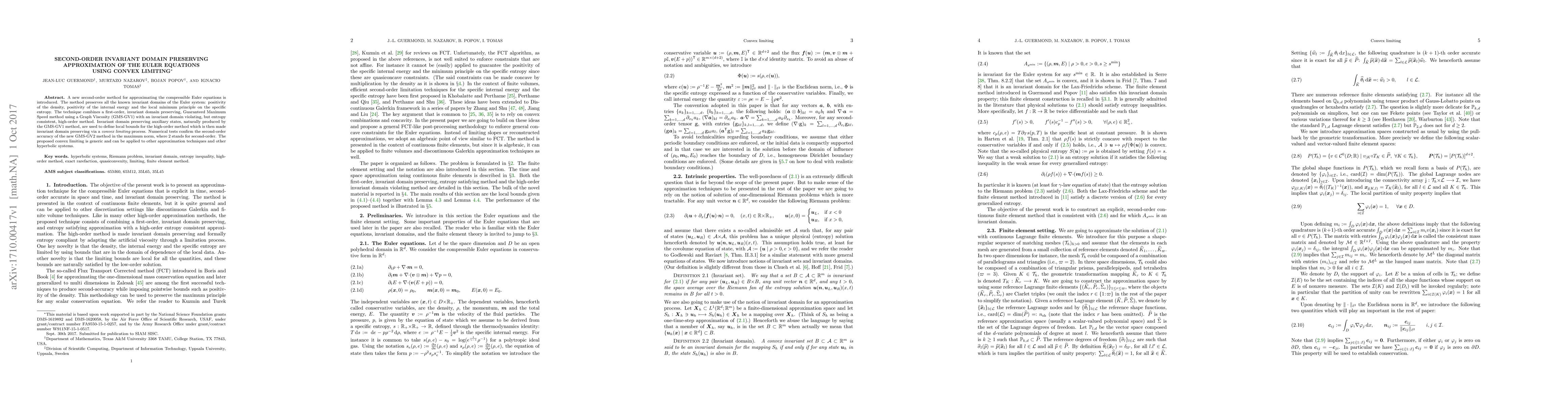 A new second-order method for approximating the compressible Euler equations is introduced. The method preserves all the known invariant domains of the Euler system: positivity of the density, positivity of the internal energy and the local minimum principle on the specific entropy. The technique combines a first-order, invariant domain preserving, Guaranteed Maximum Speed method using a Graph Viscosity (GMS-GV1) with an invariant domain violating, but entropy consistent, high-order method. Invariant domain preserving auxiliary states, naturally produced by the GMS-GV1 method, are used to define local bounds for the high-order method which is then made invariant domain preserving via a convex limiting process. Numerical tests confirm the second-order accuracy of the new GMS-GV2 method in the maximum norm, where 2 stands for second-order. The proposed convex limiting is generic and can be applied to other approximation techniques and other hyperbolic systems.