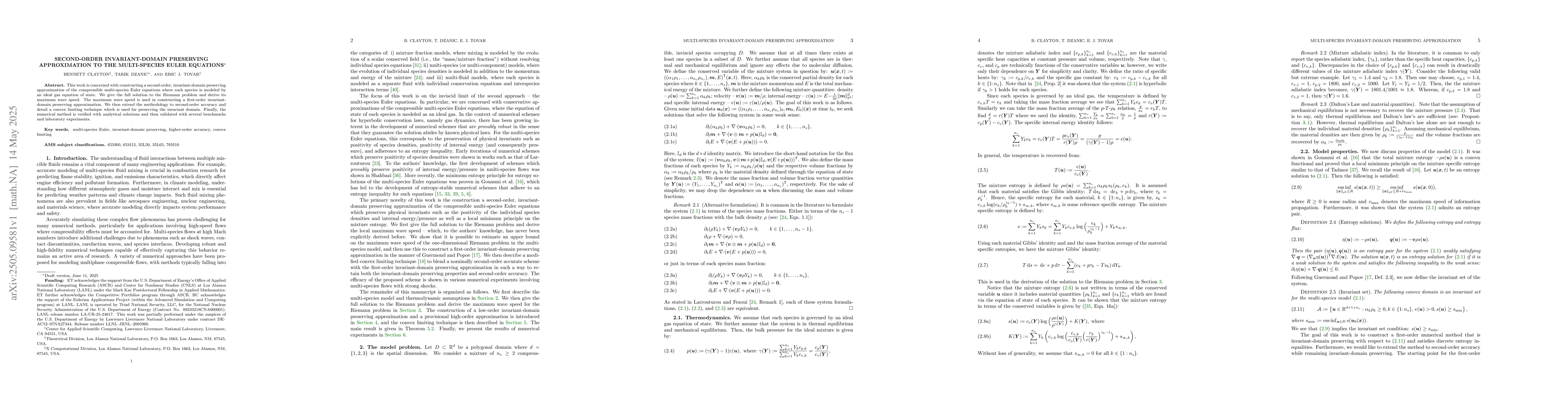 The paper presents a novel convex limiting technique for second-order invariant-domain preserving approximation of multi-species Euler equations.