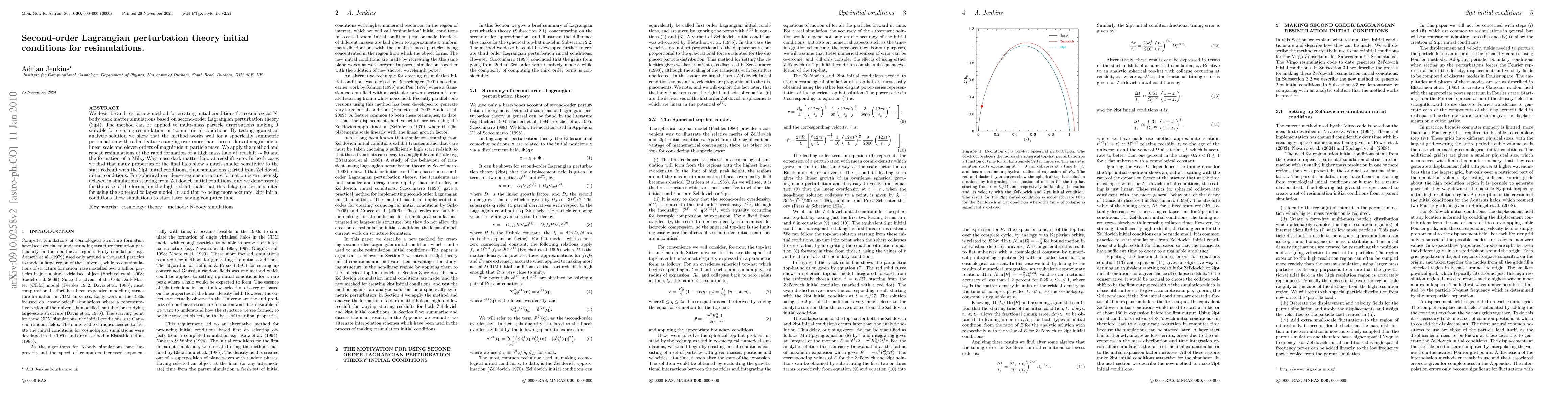 We describe and test a new method for creating initial conditions for cosmological N-body dark matter simulations based on second-order Lagrangian perturbation theory (2lpt). The method can be applied to multi-mass particle distributions making it suitable for creating resimulation, or `zoom' initial conditions. By testing against an analytic solution we show that the method works well for a spherically symmetric perturbation with radial features ranging over more than three orders of magnitude in linear scale and eleven orders of magnitude in particle mass. We apply the method and repeat resimulations of the rapid formation of a high mass halo at redshift fifty and the formation of a Milky-Way mass dark matter halo at redshift zero. In both cases we find that many properties of the final halo show a much smaller sensitivity to the start redshift with the 2lpt initial conditions, than simulations started from Zel'dovich initial conditions. For spherical overdense regions structure formation is erroneously delayed in simulations starting from Zel'dovich initial conditions, and we demonstrate for the case of the formation the high redshift halo that this delay can be accounted for using the spherical collapse model. In addition to being more accurate, 2lpt initial conditions allow simulations to start later, saving computer time.