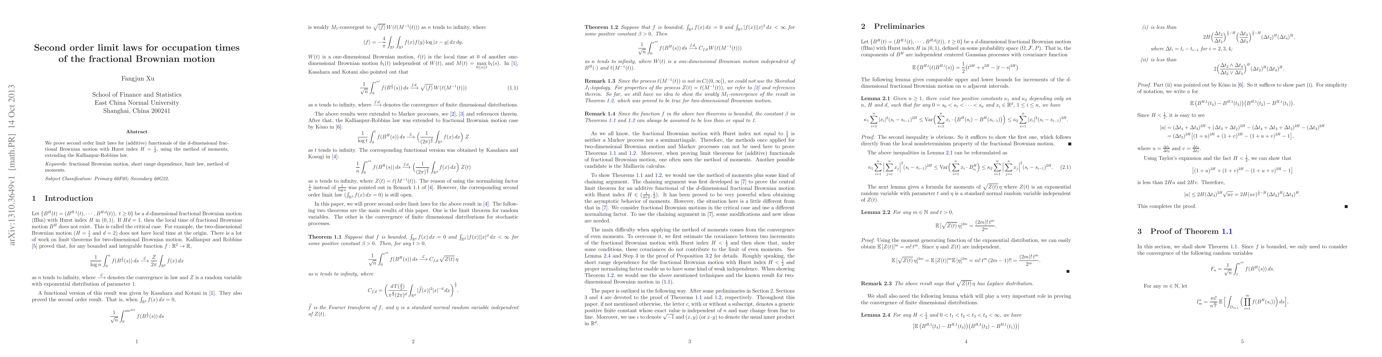 Researchers proved second-order limit laws for occupation times of d-dimensional fractional Brownian motion, extending a previous law and using the method of moments.