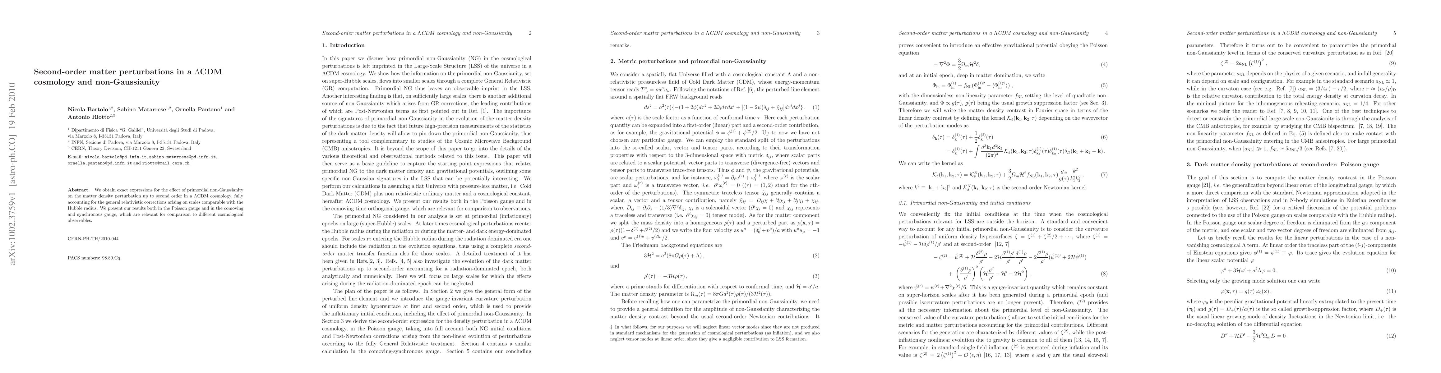 This paper derives exact expressions for the impact of primordial non-Gaussianity on second-order matter density perturbations in a LambdaCDM cosmology, considering general relativistic corrections. Results are presented in both the Poisson gauge and the comoving and synchronous gauge for comparison to various cosmological observations.