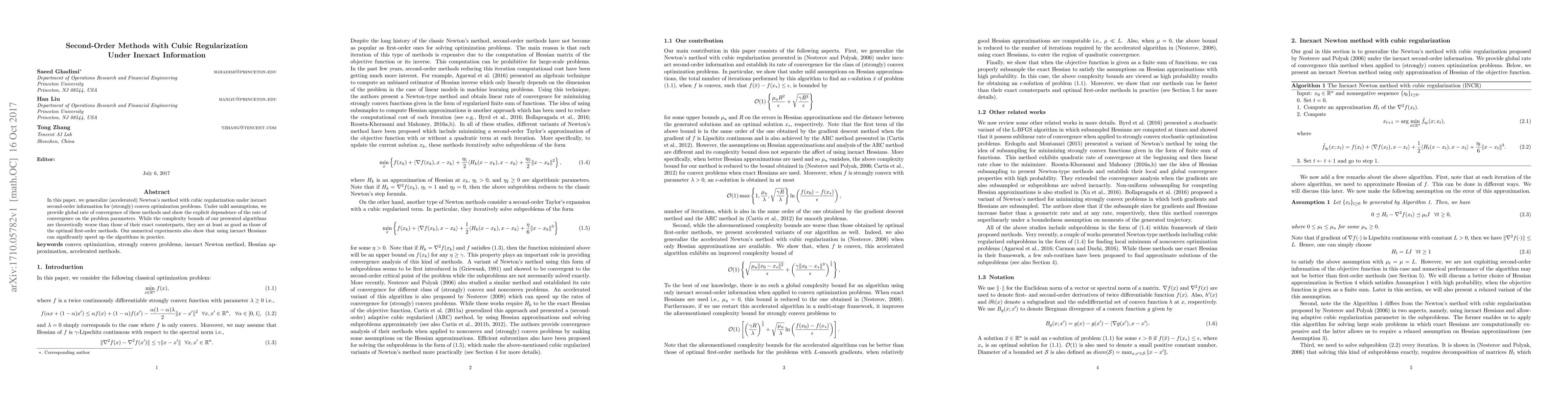 In this paper, we generalize (accelerated) Newton's method with cubic regularization under inexact second-order information for (strongly) convex optimization problems. Under mild assumptions, we provide global rate of convergence of these methods and show the explicit dependence of the rate of convergence on the problem parameters. While the complexity bounds of our presented algorithms are theoretically worse than those of their exact counterparts, they are at least as good as those of the optimal first-order methods. Our numerical experiments also show that using inexact Hessians can significantly speed up the algorithms in practice.