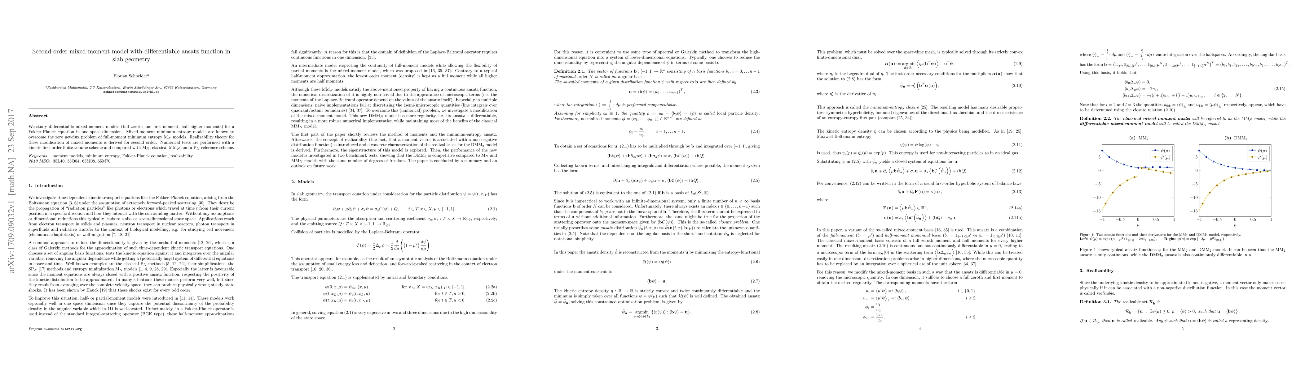 We study differentiable mixed-moment models (full zeroth and first moment, half higher moments) for a Fokker-Planck equation in one space dimension. Mixed-moment minimum-entropy models are known to overcome the zero net-flux problem of full-moment minimum entropy $M_N$ models. Realizability theory for these modification of mixed moments is derived for second order. Numerical tests are performed with a kinetic first-order finite volume scheme and compared with $M_N$, classical $MM_N$ and a $P_N$ reference scheme.