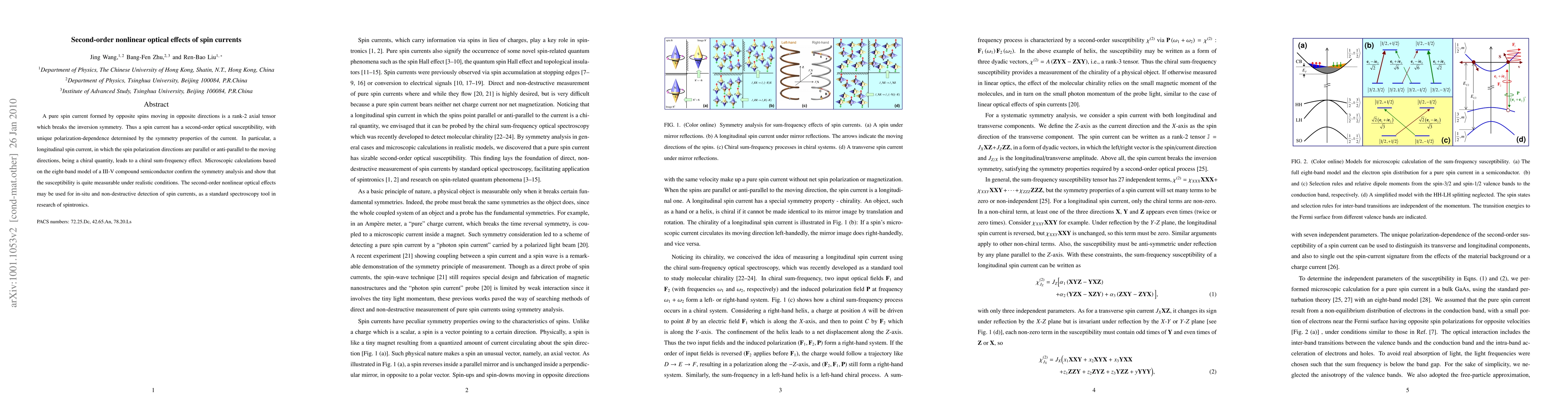 Research reveals that spin currents can induce second-order nonlinear optical effects, enabling non-destructive detection of spin currents through spectroscopy. These effects show unique polarization-dependence tied to the symmetry properties of the spin current.