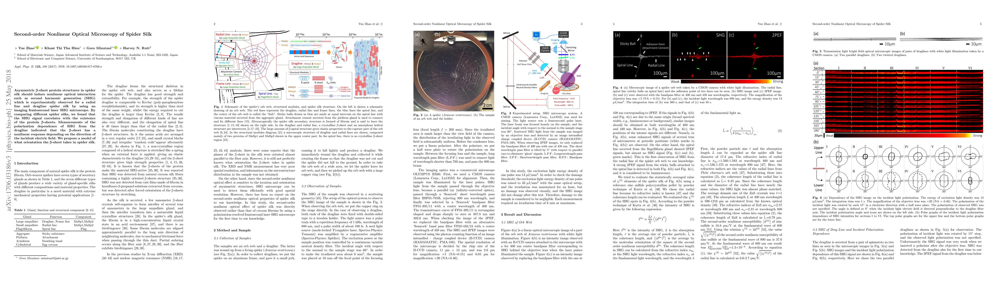 Researchers used a laser microscope to study spider silk, finding that its second harmonic generation signal correlates with the presence of beta-sheets, which they propose orient in a specific way.