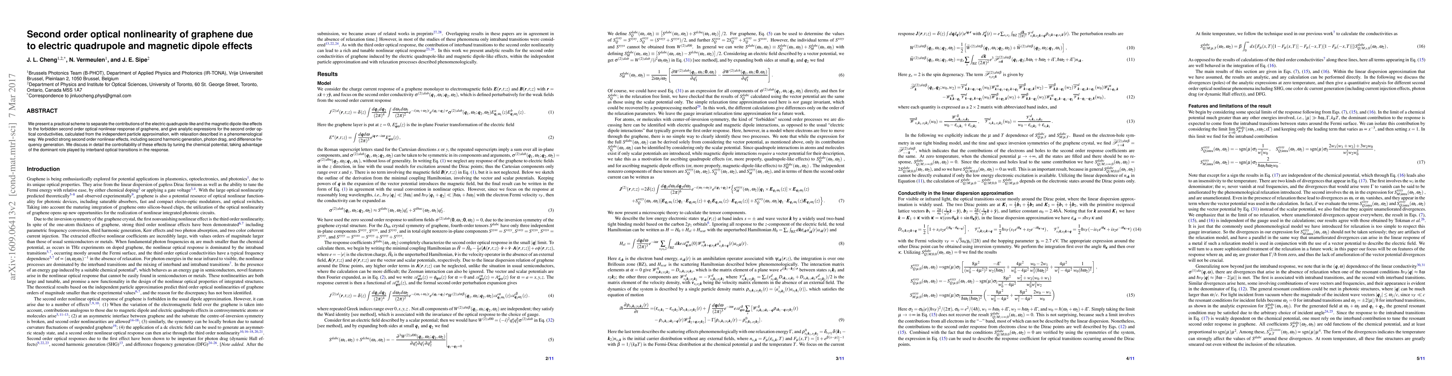 This research presents a method to isolate and analyze the contributions of electric quadrupole and magnetic dipole effects to graphene's second-order optical nonlinearity. The study provides analytic expressions for these nonlinear optical conductivities and predicts significant nonlinear effects like second harmonic generation, photon drag, and difference frequency generation, which can be controlled by adjusting the chemical potential.