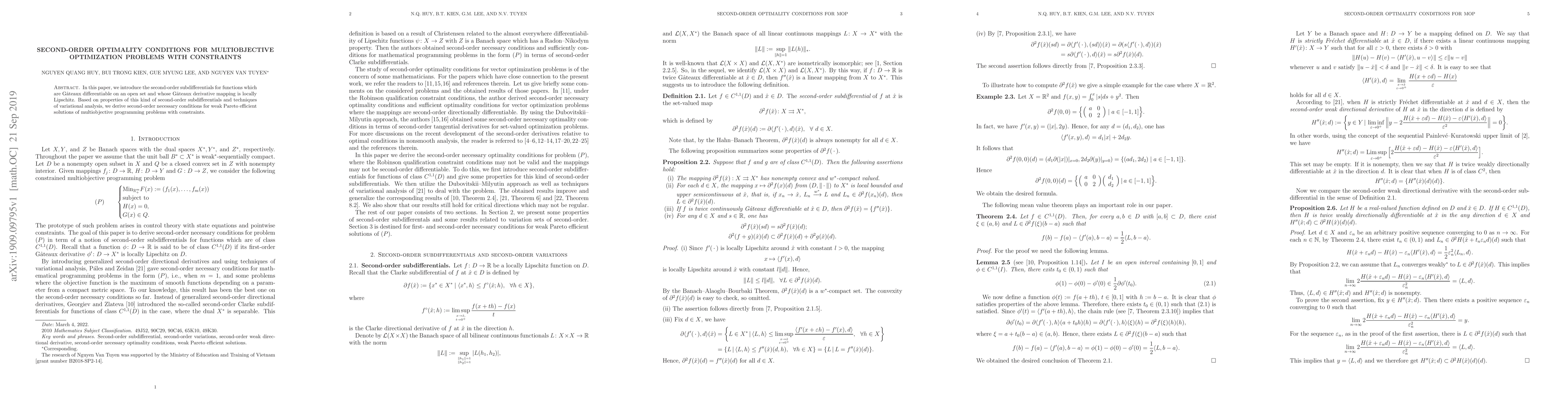 This paper develops second-order subdifferentials for Gâteaux differentiable functions and derives second-order necessary conditions for weak Pareto efficient solutions in constrained multiobjective optimization problems using variational analysis techniques.