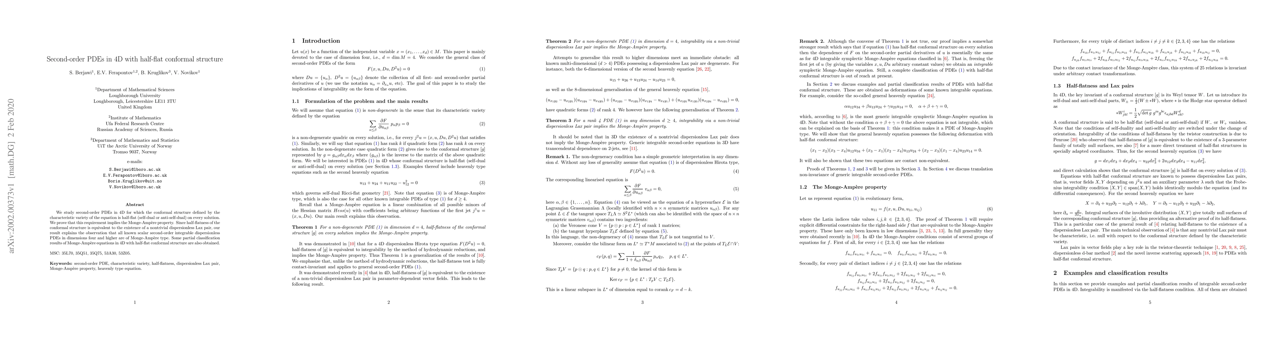 The research paper proves that second-order PDEs in 4D with a half-flat conformal structure are Monge-Ampere equations, explaining why these equations are integrable dispersionless PDEs in dimensions four and higher.