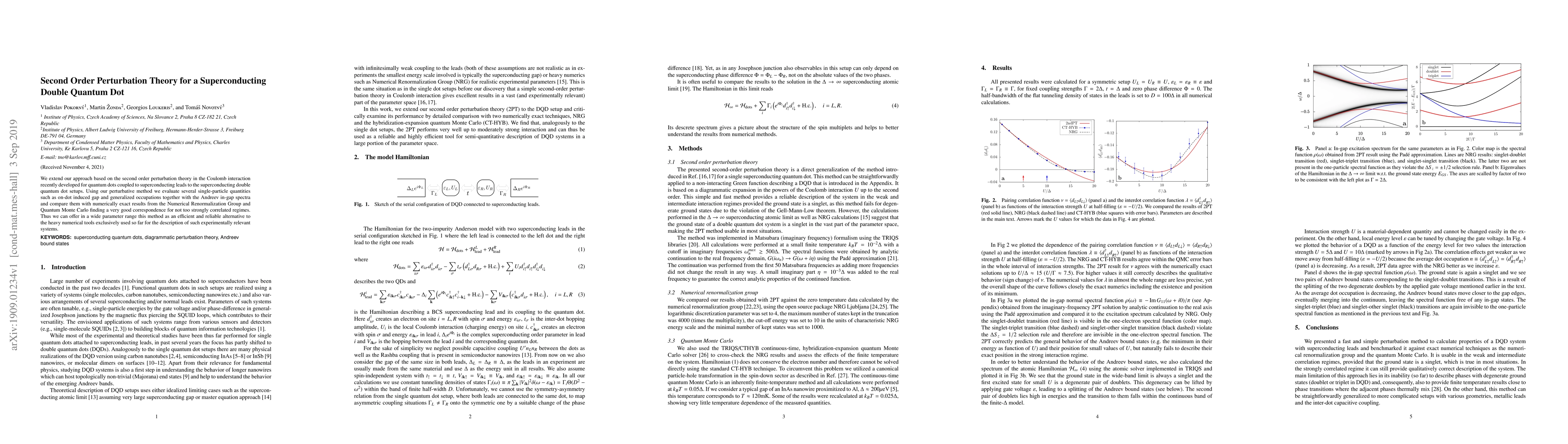 Researchers developed a new method for studying superconducting double quantum dots using second-order perturbation theory, finding good agreement with numerical results for non-strongly correlated systems.