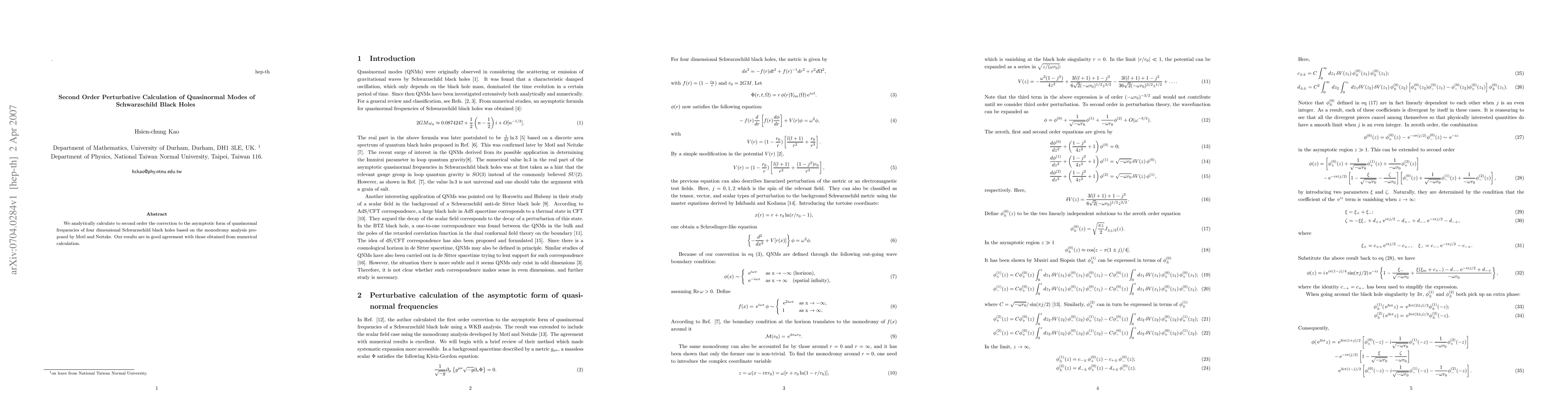 This paper analytically computes second-order corrections to the quasinormal frequencies of four-dimensional Schwarzschild black holes using monodromy analysis, achieving results consistent with numerical calculations. The method provides a refined understanding of black hole perturbation dynamics.