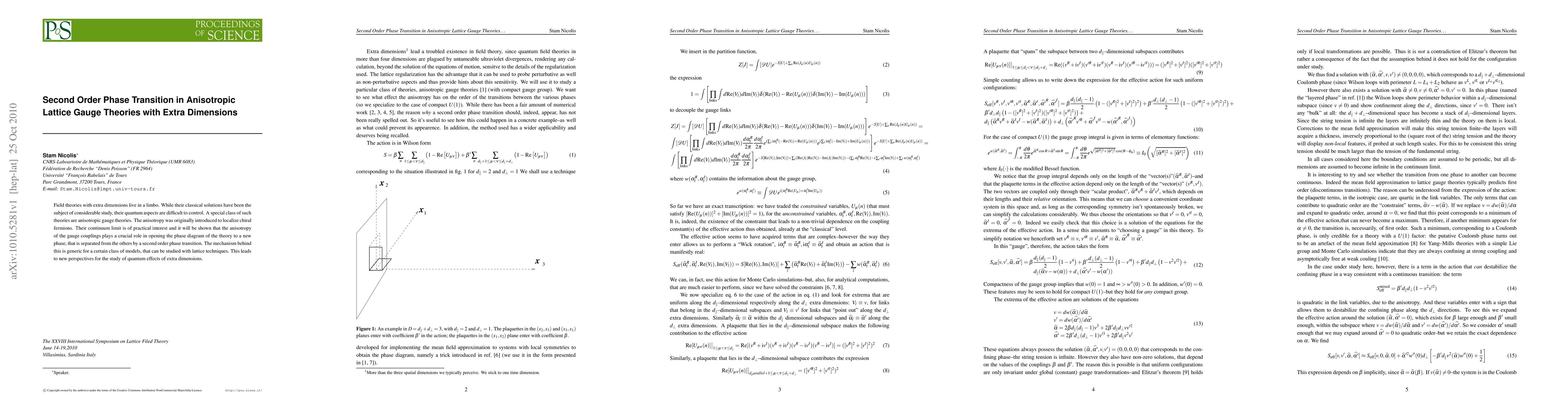 Field theories with extra dimensions live in a limbo. While their classical solutions have been the subject of considerable study, their quantum aspects are difficult to control. A special class of such theories are anisotropic gauge theories. The anisotropy was originally introduced to localize chiral fermions. Their continuum limit is of practical interest and it will be shown that the anisotropy of the gauge couplings plays a crucial role in opening the phase diagram of the theory to a new phase, that is separated from the others by a second order phase transition. The mechanism behind this is generic for a certain class of models, that can be studied with lattice techniques. This leads to new perspectives for the study of quantum effects of extra dimensions.