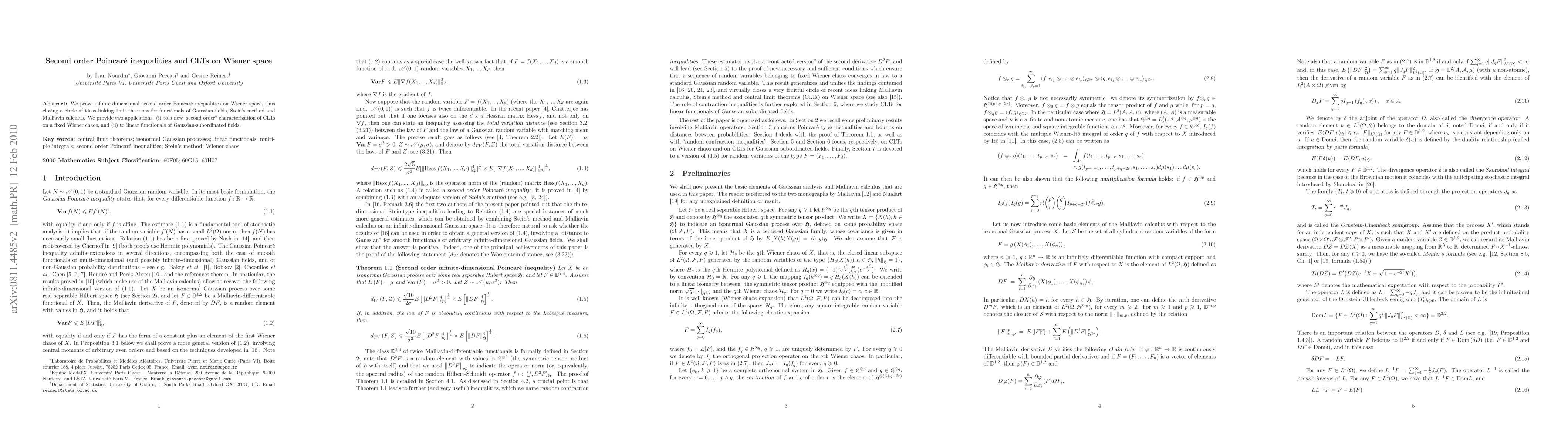We prove infinite-dimensional second order Poincar\'e inequalities on Wiener space, thus closing a circle of ideas linking limit theorems for functionals of Gaussian fields, Stein's method and Malliavin calculus. We provide two applications: (i) to a new "second order" characterization of CLTs on a fixed Wiener chaos, and (ii) to linear functionals of Gaussian-subordinated fields.