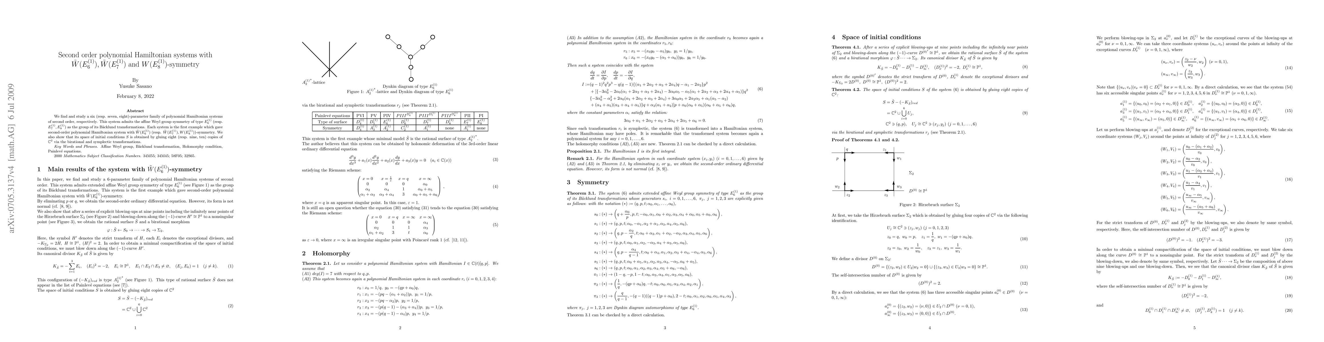 We find and study a six (resp. seven, eight)-parameter family of polynomial Hamiltonian systems of second order, respectively. This system admits the affine Weyl group symmetry of type $E_6^{(1)}$ (resp. $E_7^{(1)}, E_8^{(1)}$) as the group of its B{\"a}cklund transformations. Each system is the first example which gave second-order polynomial Hamiltonian system with ${\tilde W}(E_6^{(1)})$ (resp. ${\tilde W}(E_7^{(1)}), W(E_8^{(1)})$)-symmetry. We also show that its space of initial conditions $S$ is obtained by gluing eight (resp. nine, ten) copies of ${\Bbb C}^2$ via the birational and symplectic transformations.