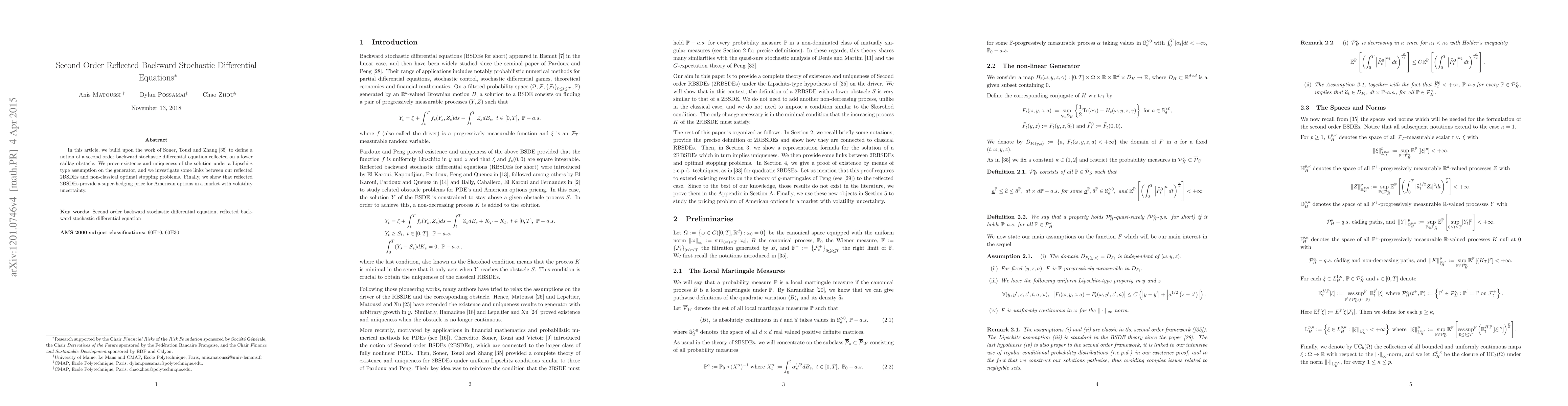 This paper defines second order reflected backward stochastic differential equations (2BSDEs) on lower càdlàg obstacles, proving existence and uniqueness under Lipschitz conditions. It also explores connections to nonclassical optimal stopping problems and demonstrates that these 2BSDEs yield super-hedging prices for American options in markets with volatility uncertainty.