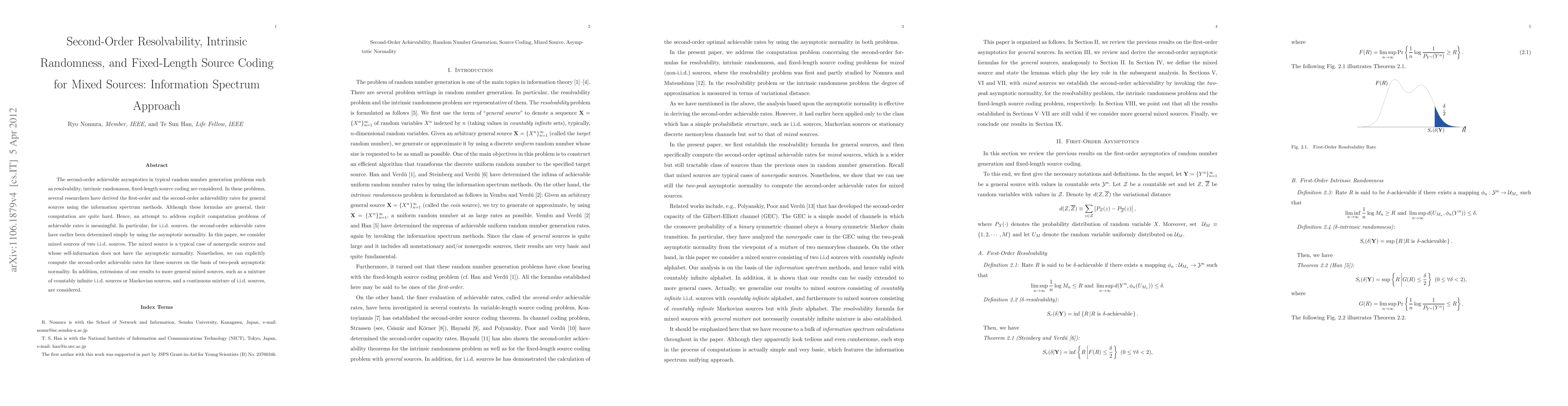 This paper explores second-order achievable rates for resolvability, intrinsic randomness, and fixed-length source coding in mixed sources of two independent and identically distributed (i.i.d.) sources.