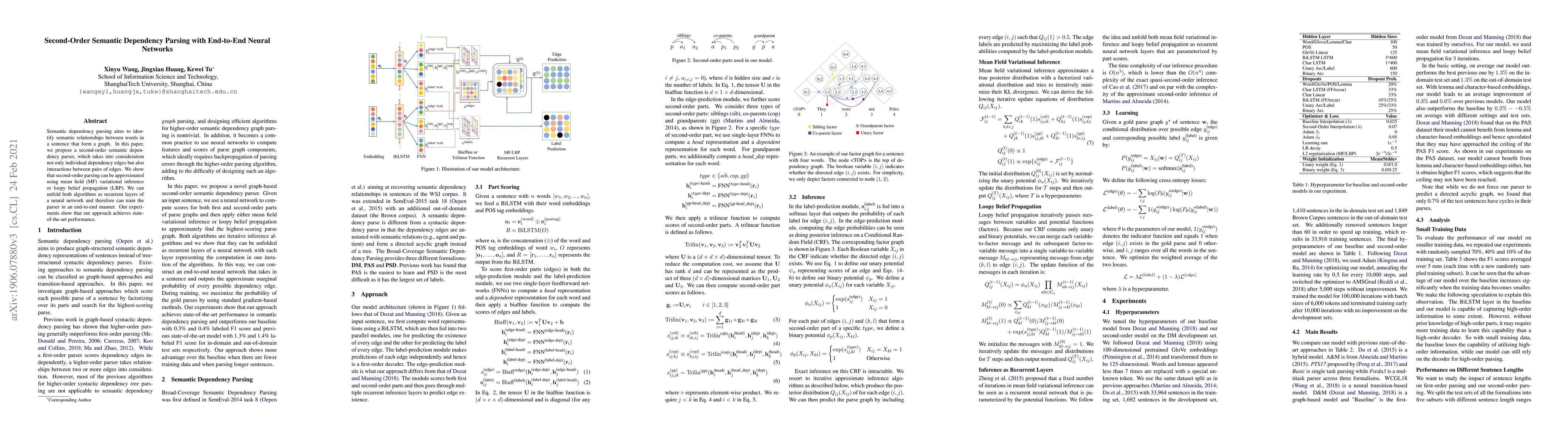 The paper proposes a second-order semantic dependency parser that considers interactions between pairs of dependency edges, employing mean field variational inference or loopy belief propagation to approximate the parsing. The method is trained end-to-end using recurrent layers of a neural network, achieving state-of-the-art performance.