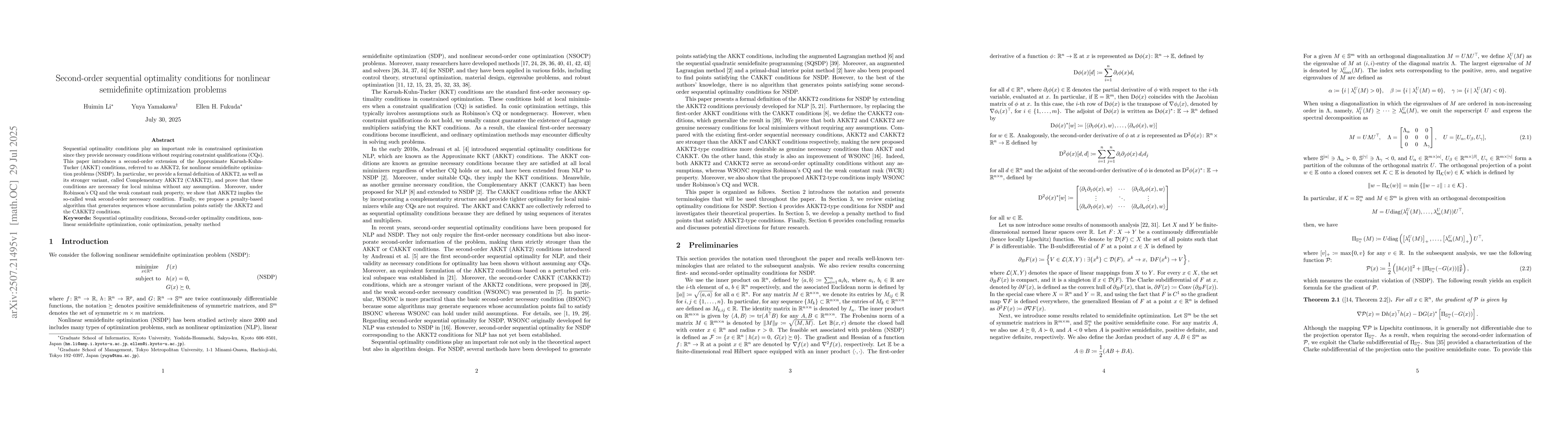 The paper introduces AKKT2 and CAKKT2 conditions for NSDP, proves their necessity for local minima, and establishes their relationship with WSONC under specific assumptions.