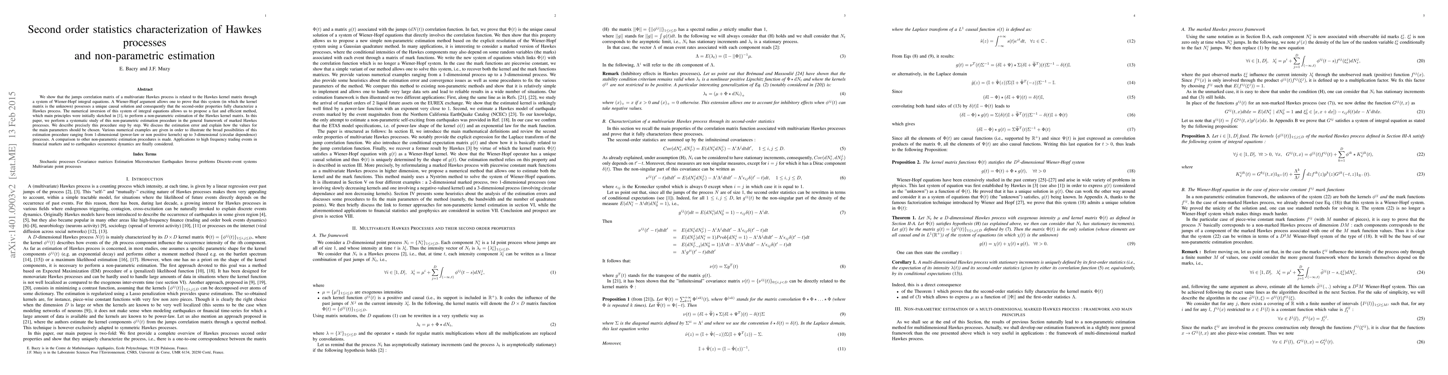 This paper demonstrates that the second-order statistics of a multivariate Hawkes process are fully characterized by its jumps correlation matrix, which is linked to the Hawkes kernel matrix via Wiener-Hopf integral equations. The authors propose a fast non-parametric estimation method for the Hawkes kernel matrix, validated through various numerical examples and applications to financial trading and earthquake dynamics.