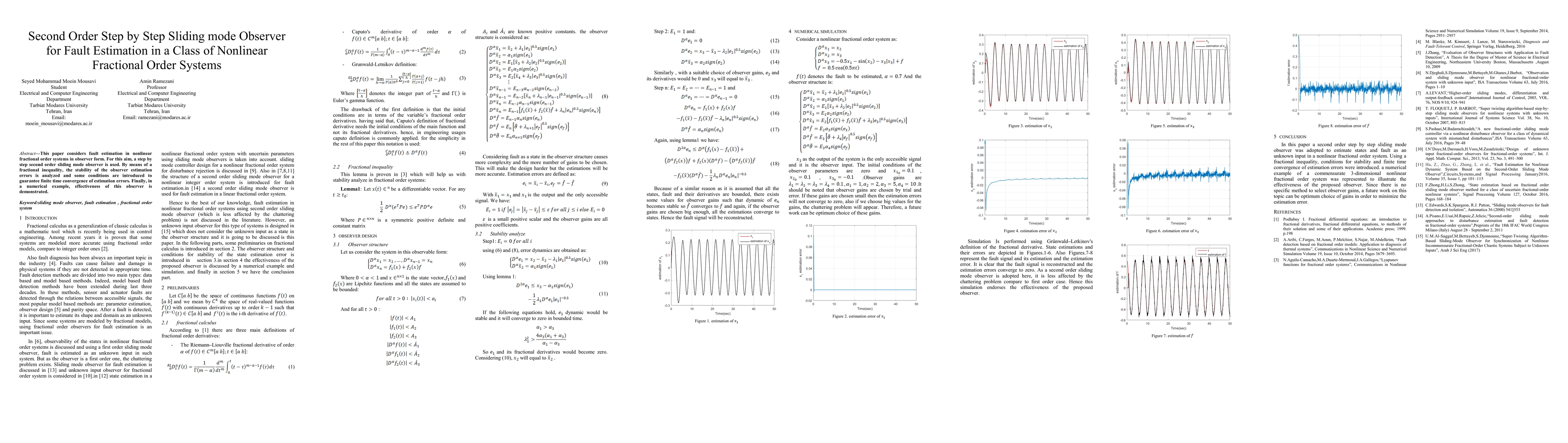 This paper proposes a second order step by step sliding mode observer for fault estimation in nonlinear fractional order systems, ensuring stability through fractional inequality analysis and demonstrating its effectiveness via a numerical example.