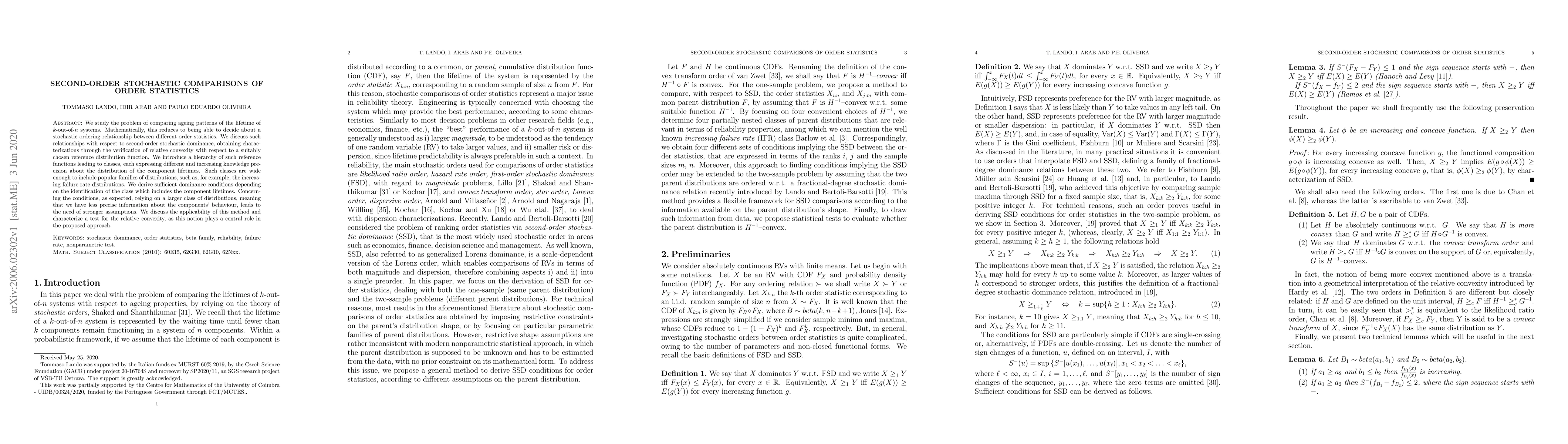 We study the problem of comparing ageing patterns of the lifetime of k-out-of-n systems. Mathematically, this reduces to being able to decide about a stochastic ordering relationship between different order statistics. We discuss such relationships with respect to second-order stochastic dominance, obtaining characterizations through the verification of relative convexity with respect to a suitably chosen reference distribution function. We introduce a hierarchy of such reference functions leading to classes, each expressing different and increasing knowledge precision about the distribution of the component lifetimes. Such classes are wide enough to include popular families of distributions, such as, for example, the increasing failure rate distributions. We derive sufficient dominance conditions depending on the identification of the class which includes the component lifetimes. Concerning the conditions, as expected, relying on a larger class of distributions, meaning that we have less precise information about the components behavior, leads to the need of stronger assumptions. We discuss the applicability of this method and characterize a test for the relative convexity, as this notion plays a central role in the proposed approach.