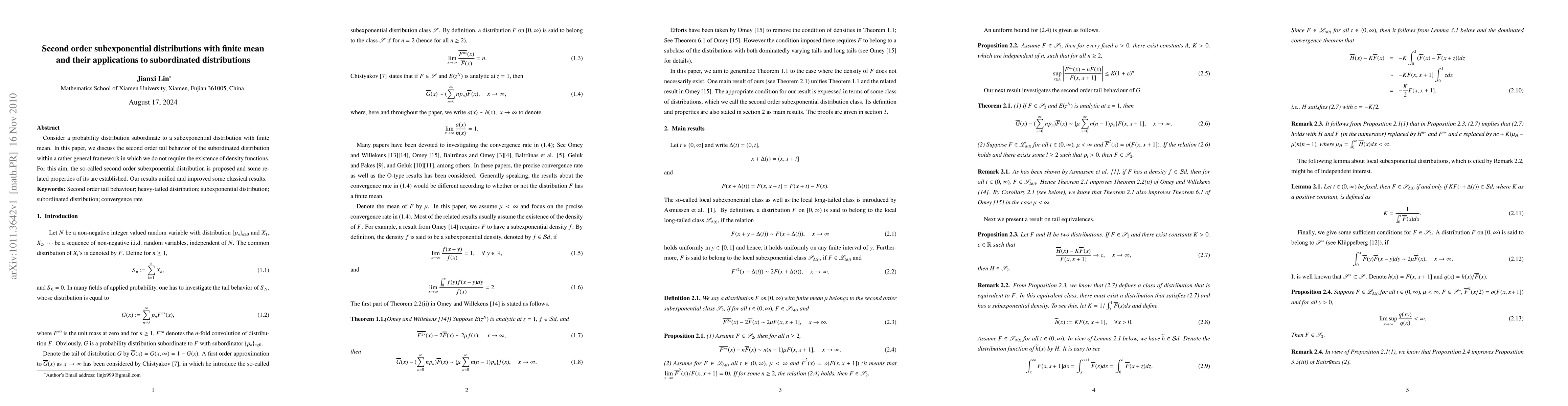 This paper introduces a new class of probability distributions that capture second-order tail behavior, improving upon classical results and providing insights into subordinated distributions with finite mean. It establishes properties and applications for these novel distributions in various fields.