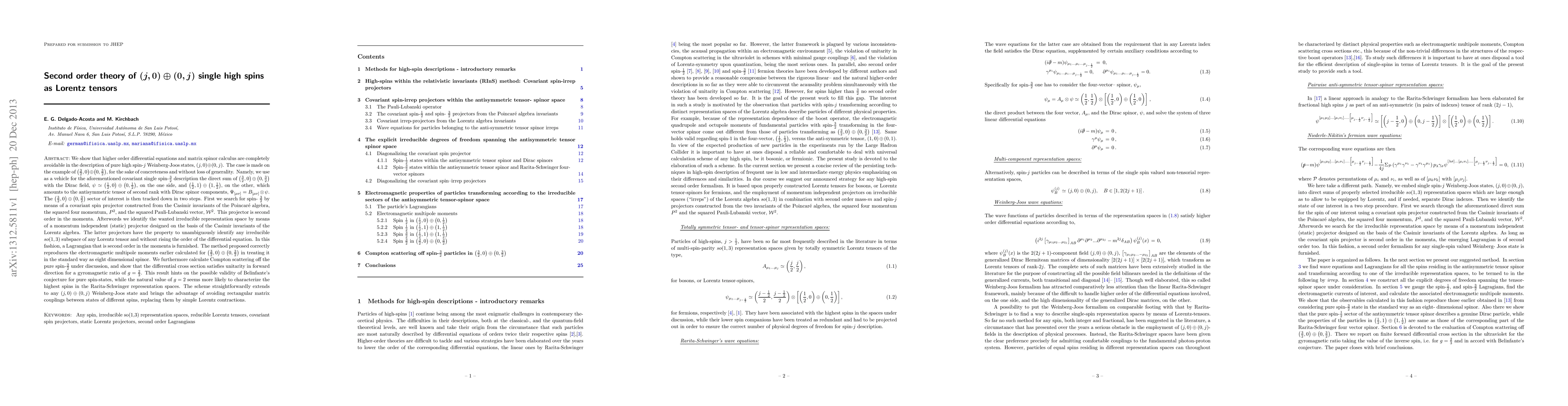 We show that higher order differential equations and matrix spinor calculus are completely avoidable in the description of pure high spin-$j$ Weinberg-Joos states, $(j,0)\oplus (0,j)$. The case is made on the example of $(3/2,0)\oplus(0,3/2)$, for the sake of concreteness and without loss of generality. Namely, we use as a vehicle for the aforementioned covariant single spin-$3/2$ description the antisymmetric tensor of second rank with Dirac spinor components, $\Psi_{[\mu\nu]}=B_{[\mu\nu]}\otimes\psi$. The $(3/2,0)\oplus(0,3/2)$ sector of interest is tracked down in two steps. First we search for spin-$3/2$ by means of a covariant spin projector constructed from the Casimir invariants of the Poincar\'e algebra, and then we identify the wanted irreducible representation space by means of a momentum independent (static) projector designed on the basis of the Casimir invariants of the Lorentz algebra. The latter projectors unambiguously identify any irreducible $so(1,3)$ subspace of any Lorentz tensor and without rising the order of the differential equation. The method proposed correctly reproduces the electromagnetic multipole moments earlier calculated for single spin-$3/2$ particles in treating it in the standard way as eight dimensional spinor. We furthermore calculate Compton scattering off the pure spin-$3/2$ under discussion, and show that the differential cross section satisfies unitarity in forward direction for a gyromagnetic ratio of $g=2/3$. Suggesting possible validity of Belinfante's conjecture for pure spin-states, while the natural value of $g=2$ seems more likely to characterize the highest spins in the Rarita-Schwinger representation spaces. The scheme straightforwardly extends to any $(j,0)\oplus (0,j)$ Weinberg-Joos state and brings the advantage of avoiding rectangular matrix couplings between states of different spins, replacing them by simple Lorentz contractions.