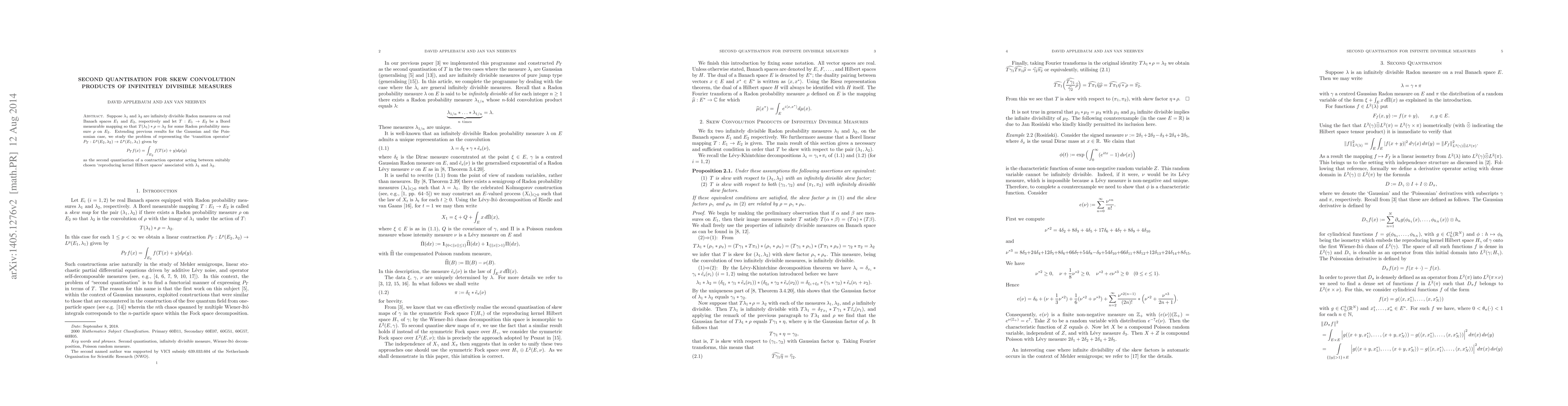 This paper extends previous results to represent the transition operator for skew convolution products of infinitely divisible measures via second quantisation, focusing on Borel measurable mappings and associated contraction operators in reproducing kernel Hilbert spaces.