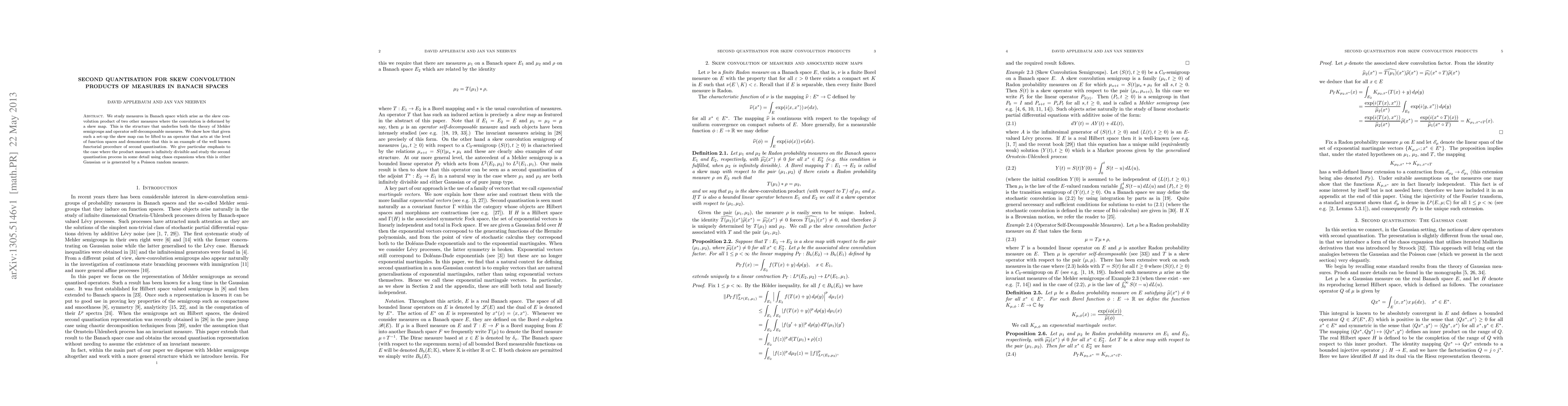 We study measures in Banach space which arise as the skew convolution product of two other measures where the convolution is deformed by a skew map. This is the structure that underlies both the theory of Mehler semigroups and operator self-decomposable measures. We show how that given such a set-up the skew map can be lifted to an operator that acts at the level of function spaces and demonstrate that this is an example of the well known functorial procedure of second quantisation. We give particular emphasis to the case where the product measure is infinitely divisible and study the second quantisation process in some detail using chaos expansions when this is either Gaussian or is generated by a Poisson random measure.
