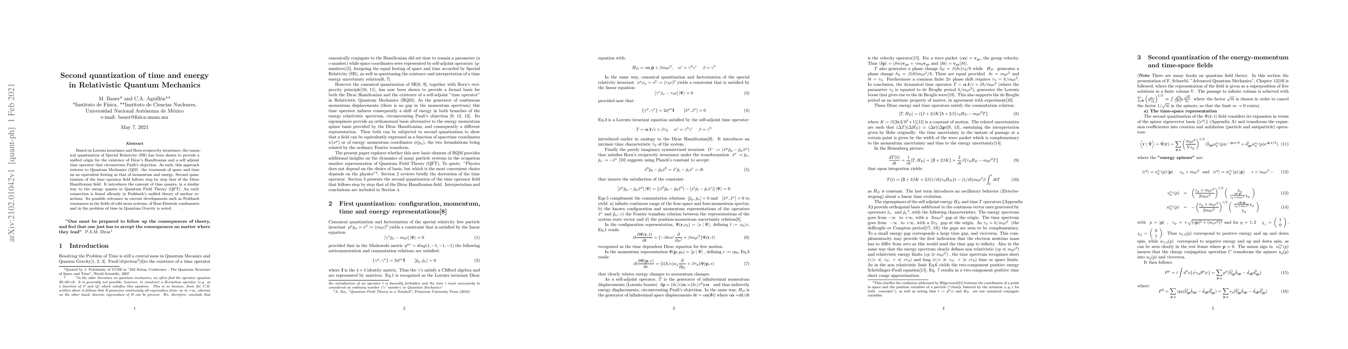 This paper proposes a second quantization approach to time and energy in Relativistic Quantum Mechanics, leveraging Lorentz and Born reciprocity invariances to unify the treatment of space-time and momentum-energy. It introduces time quanta analogous to energy quanta, potentially impacting areas like cold atom systems and Quantum Gravity.