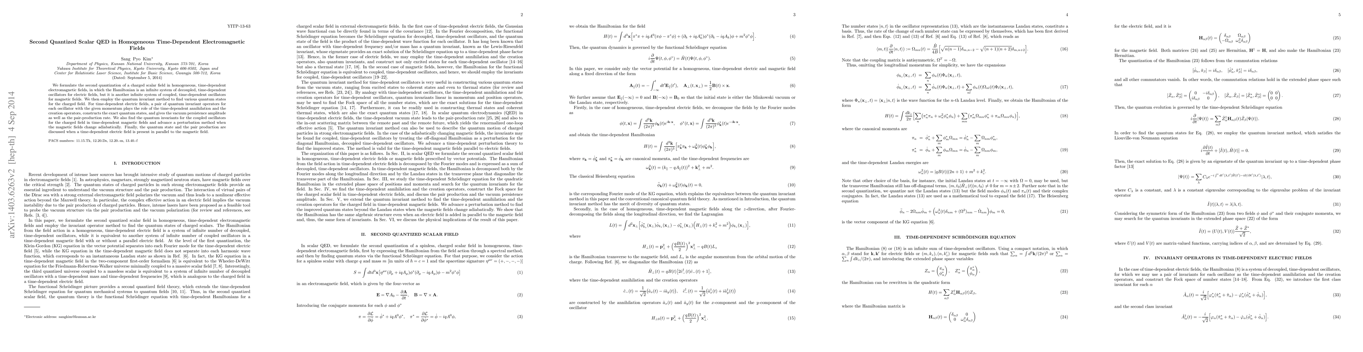 Researchers developed a new method to study charged scalar fields in time-dependent electromagnetic fields, finding quantum states and predicting pair production rates, with implications for understanding particle behavior under varying field conditions.