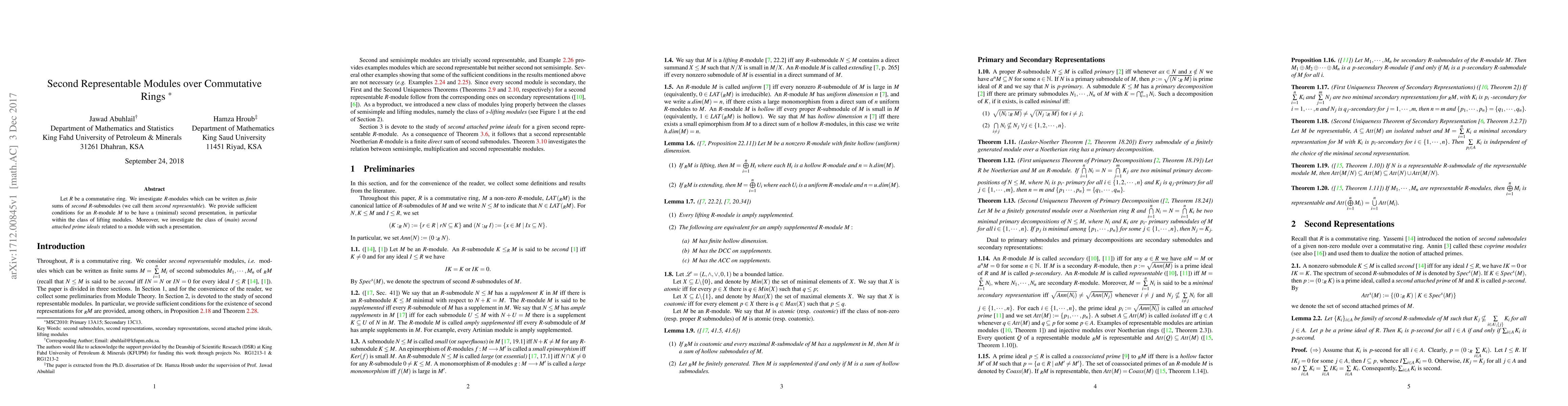 Let $R$ be a commutative ring. We investigate $R$-modules which can be written as \emph{finite} sums of {\it {second}} $R$-submodules (we call them \emph{second representable}). We provide sufficient conditions for an $R$-module $M$ to be have a (minimal) second presentation, in particular within the class of lifting modules. Moreover, we investigate the class of (\emph{main}) \emph{second attached prime ideals} related to a module with such a presentation.