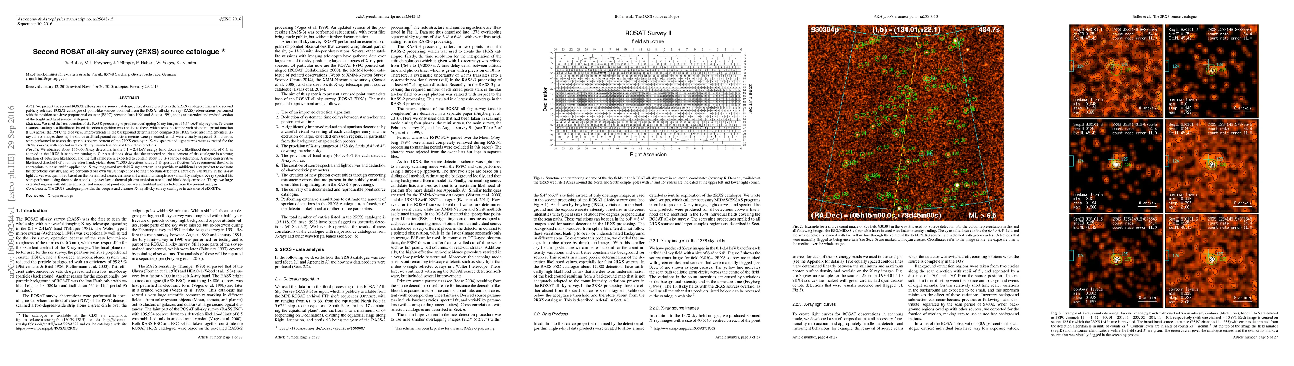 The 2RXS catalogue is an extended and revised version of the ROSAT all-sky survey, featuring about 135,000 X-ray detections down to a likelihood threshold of 6.5, with an estimated 30% spurious detections. It provides the deepest and cleanest X-ray all-sky survey data before the eROSITA mission.