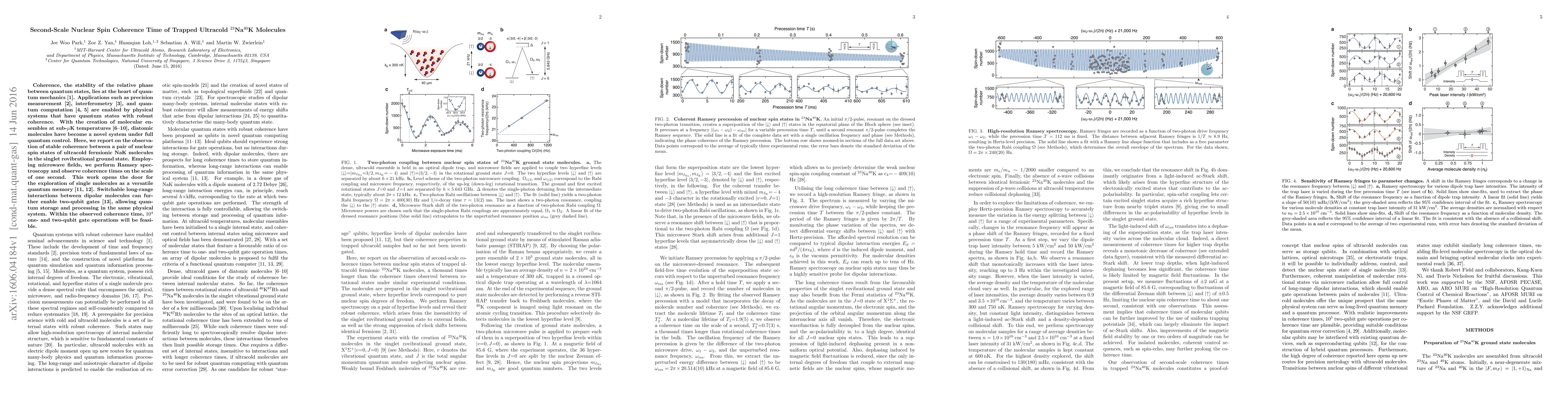 This paper reports the observation of second-scale nuclear spin coherence in trapped ultracold NaK molecules, enabling potential applications in quantum memory and computation through feasible one- and two-qubit gate operations. The study utilizes Ramsey spectroscopy and microwave fields to achieve stable coherence, paving the way for quantum storage and processing at the molecular level.