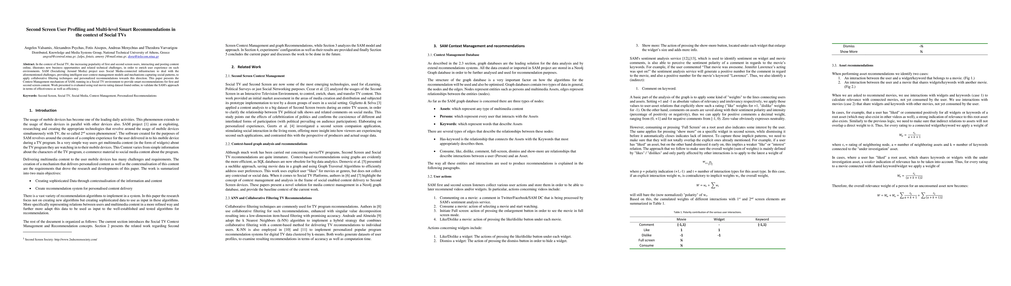 In the context of Social TV, the increasing popularity of first and second screen users, interacting and posting content online, illustrates new business opportunities and related technical challenges, in order to enrich user experience on such environments. SAM (Socializing Around Media) project uses Social Media-connected infrastructure to deal with the aforementioned challenges, providing intelligent user context management models and mechanisms capturing social patterns, to apply collaborative filtering techniques and personalized recommendations towards this direction. This paper presents the Context Management mechanism of SAM, running in a Social TV environment to provide smart recommendations for first and second screen content. Work presented is evaluated using real movie rating dataset found online, to validate the SAM's approach in terms of effectiveness as well as efficiency.