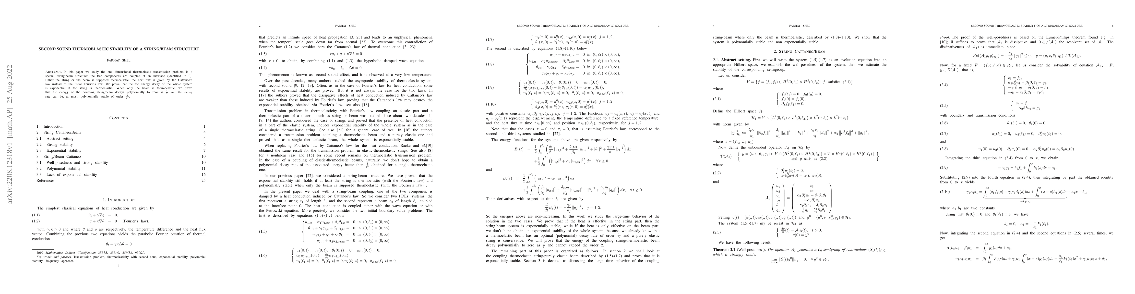 This paper investigates the thermoelastic stability of a coupled string/beam structure where either component is thermoelastic, using Cattaneo's heat flux law. It proves exponential energy decay for the system when the string is thermoelastic, and polynomial decay of $\frac{1}{t}$ for the beam-only thermoelastic case, with a maximum stability rate of $\frac{1}{t^2}$.