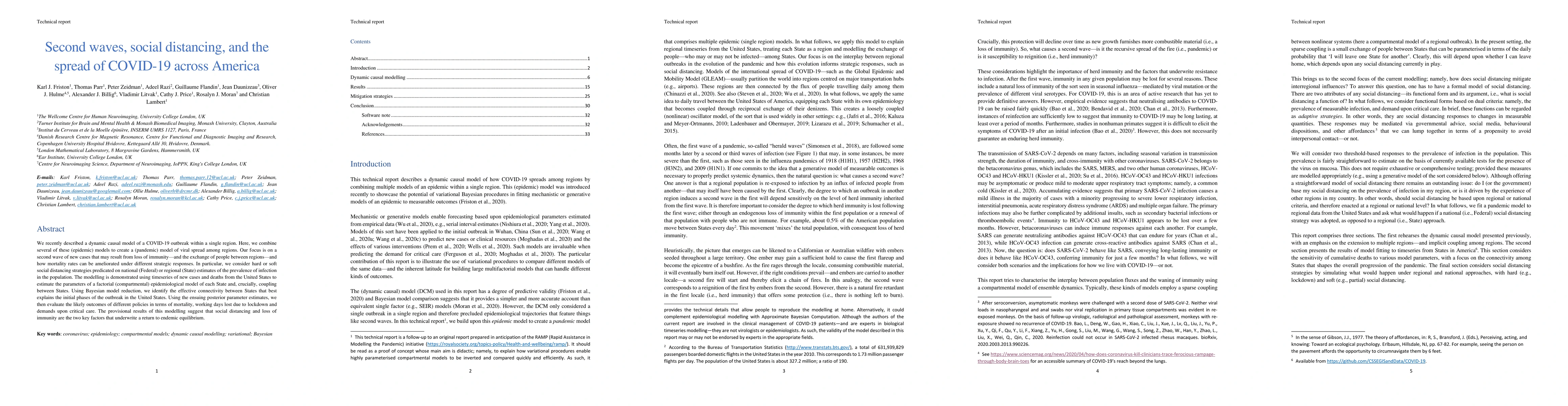 We recently described a dynamic causal model of a COVID-19 outbreak within a single region. Here, we combine several of these (epidemic) models to create a (pandemic) model of viral spread among regions. Our focus is on a second wave of new cases that may result from loss of immunity--and the exchange of people between regions--and how mortality rates can be ameliorated under different strategic responses. In particular, we consider hard or soft social distancing strategies predicated on national (Federal) or regional (State) estimates of the prevalence of infection in the population. The modelling is demonstrated using timeseries of new cases and deaths from the United States to estimate the parameters of a factorial (compartmental) epidemiological model of each State and, crucially, coupling between States. Using Bayesian model reduction, we identify the effective connectivity between States that best explains the initial phases of the outbreak in the United States. Using the ensuing posterior parameter estimates, we then evaluate the likely outcomes of different policies in terms of mortality, working days lost due to lockdown and demands upon critical care. The provisional results of this modelling suggest that social distancing and loss of immunity are the two key factors that underwrite a return to endemic equilibrium.