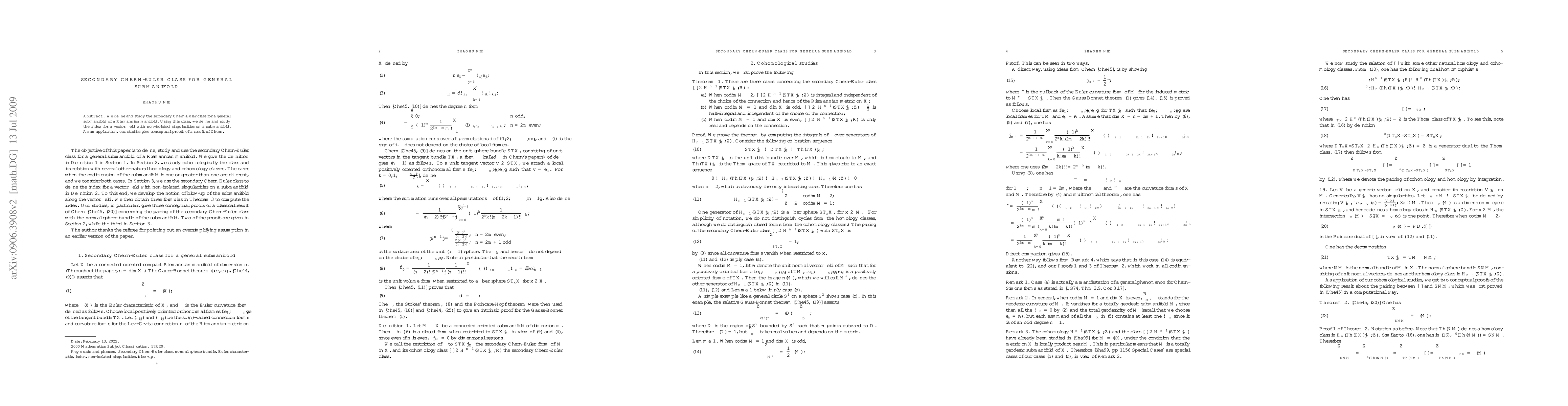 Summary: This paper introduces the secondary Chern-Euler class for general submanifolds in Riemannian manifolds, and uses it to define and analyze the index of vector fields with non-isolated singularities. It provides new proofs for a classical result by Chern.