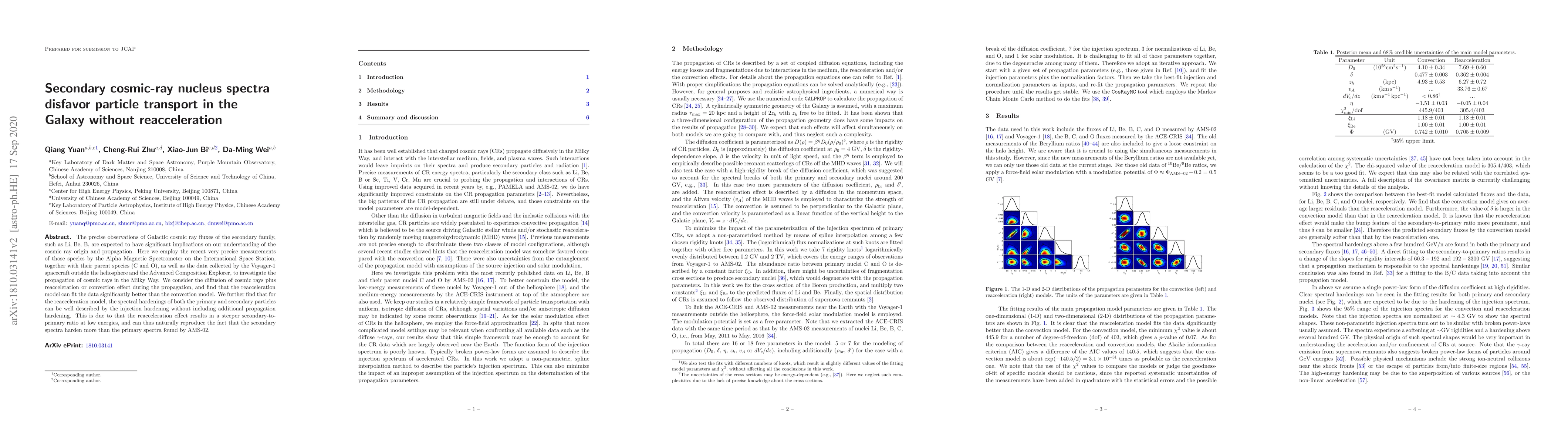 This paper uses precise measurements of secondary cosmic rays from the Alpha Magnetic Spectrometer to argue that reacceleration mechanisms are necessary for explaining cosmic ray propagation in the Galaxy, as they fit the observed spectra better than convection models. The reacceleration model also naturally explains the observed spectral hardening of secondary particles.