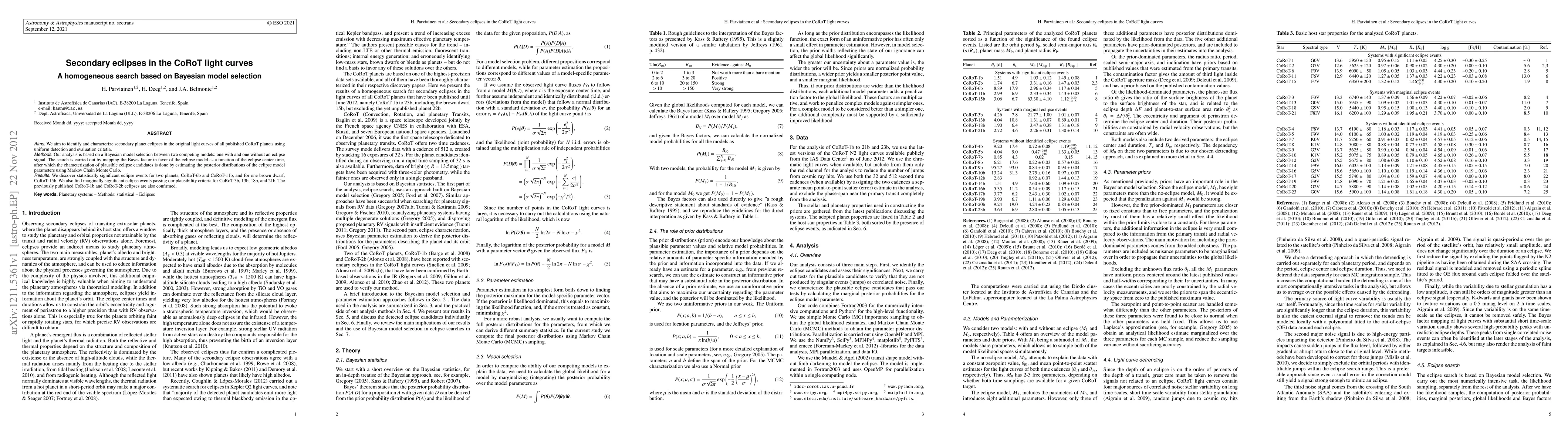 This study employs Bayesian model selection to identify and characterize secondary eclipses in CoRoT light curves for published planets, discovering significant eclipses for CoRoT-6b, CoRoT-11b, and CoRoT-15b, and confirming previously reported eclipses for CoRoT-1b and CoRoT-2b.