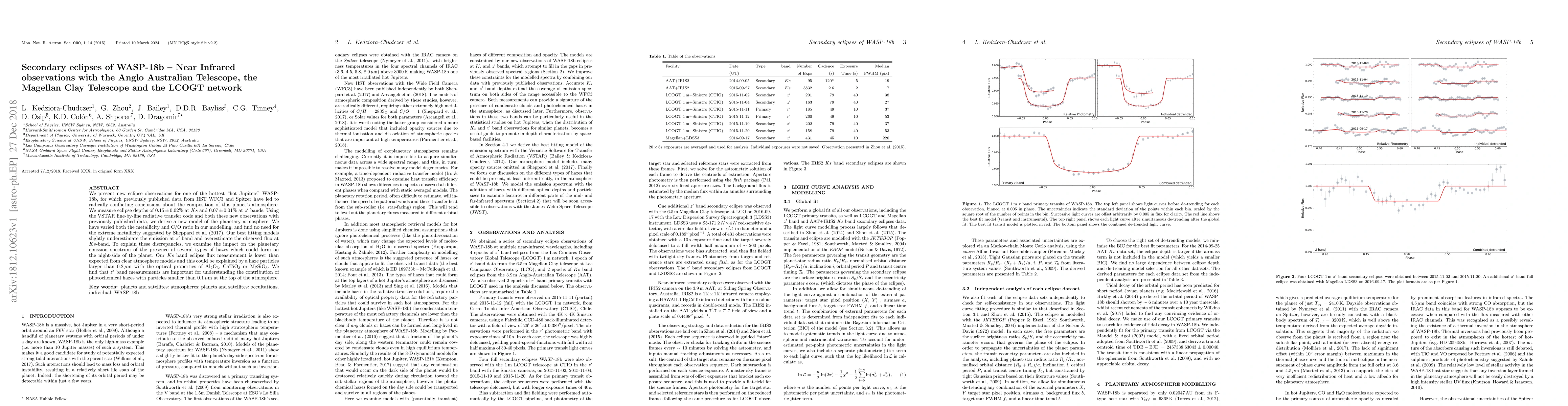 We present new eclipse observations for one of the hottest "hot Jupiters" WASP-18b, for which previously published data from HST WFC3 and Spitzer have led to radically conflicting conclusions about the composition of this planet's atmosphere. We measure eclipse depths of $0.15\pm0.02\%$ at $Ks$ and $0.07\pm0.01\%$ at $z'$ bands. Using the VSTAR line-by-line radiative transfer code and both these new observations with previously published data, we derive a new model of the planetary atmosphere. We have varied both the metallicity and C/O ratio in our modelling, and find no need for the extreme metallicity suggested by Sheppard et al.(2017). Our best fitting models slightly underestimate the emission at $z'$ band and overestimate the observed flux at $Ks$-band. To explain these discrepancies, we examine the impact on the planetary emission spectrum of the presence of several types of hazes which could form on the night-side of the planet. Our $Ks$ band eclipse flux measurement is lower than expected from clear atmosphere models and this could be explained by a haze particles larger than 0.2 $\mu$m with the optical properties of Al$_{2}$O$_{3}$, CaTiO$_{3}$ or MgSiO$_{3}$. We find that $z'$ band measurements are important for understanding the contribution of photochemical hazes with particles smaller than 0.1 $\mu$m at the top of the atmosphere.