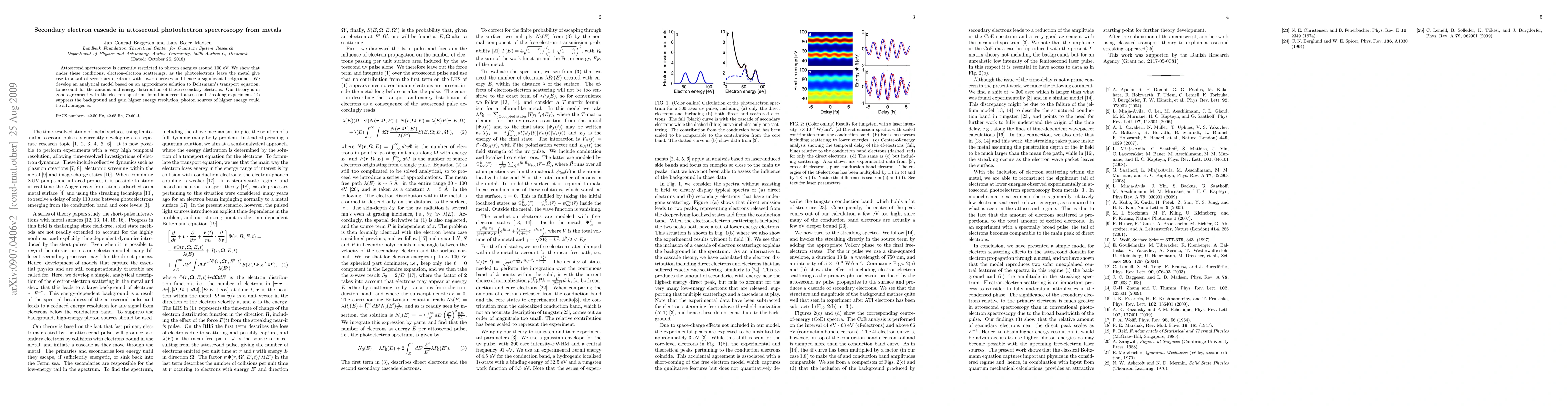 Attosecond spectroscopy is currently restricted to photon energies around 100 eV. We show that under these conditions, electron-electron scatterings, as the photoelectrons leave the metal give rise to a tail of secondary electrons with lower energies and hence a significant background. We develop an analytical model based on an approximate solution to Boltzmann's transport equation, to account for the amount and energy distribution of these secondary electrons. Our theory is in good agreement with the electron spectrum found in a recent attosecond streaking experiment. To suppress the background and gain higher energy resolution, photon sources of higher energy could be advantageous.