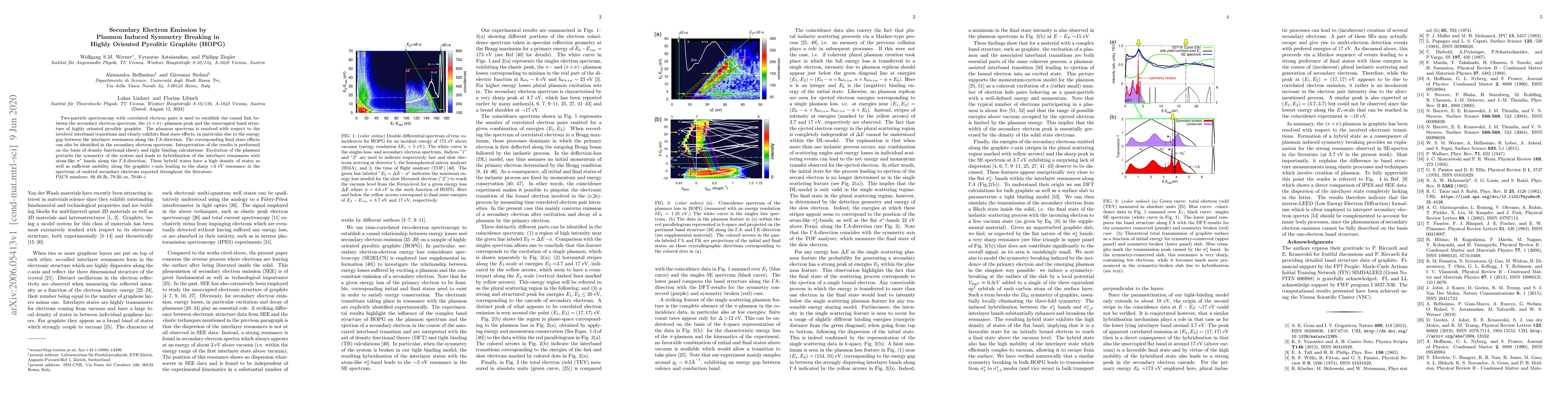 Researchers used two-particle spectroscopy to study secondary electron emission in highly oriented pyrolitic graphite (HOPG), finding a causal link between plasmon-induced symmetry breaking and the resulting spectrum of emitted electrons.