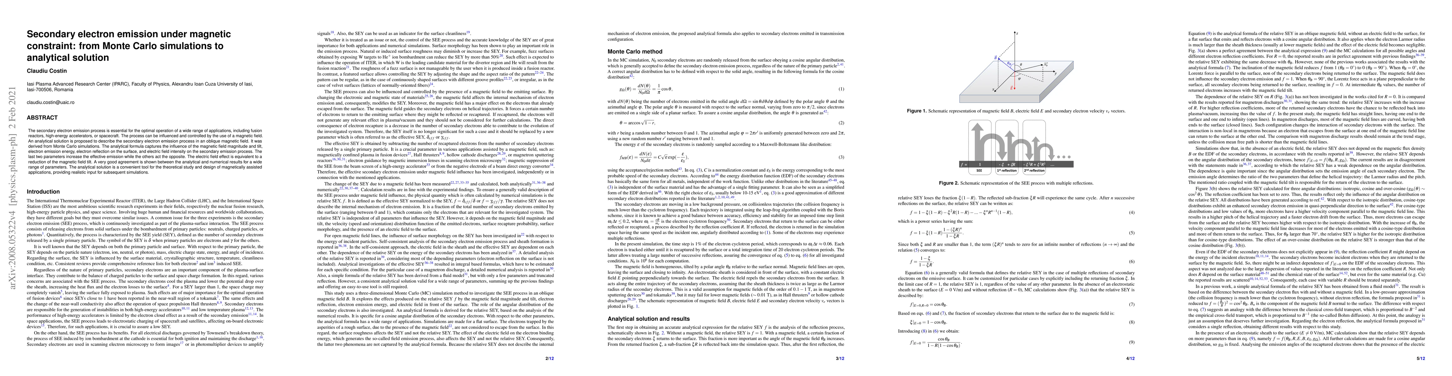 This paper proposes an analytical solution for secondary electron emission under magnetic constraint, derived from Monte Carlo simulations. The solution accounts for the effects of magnetic field magnitude and tilt, electron emission energy, electron reflection, and electric field intensity, offering a practical tool for theoretical studies and design of magnetically assisted applications.