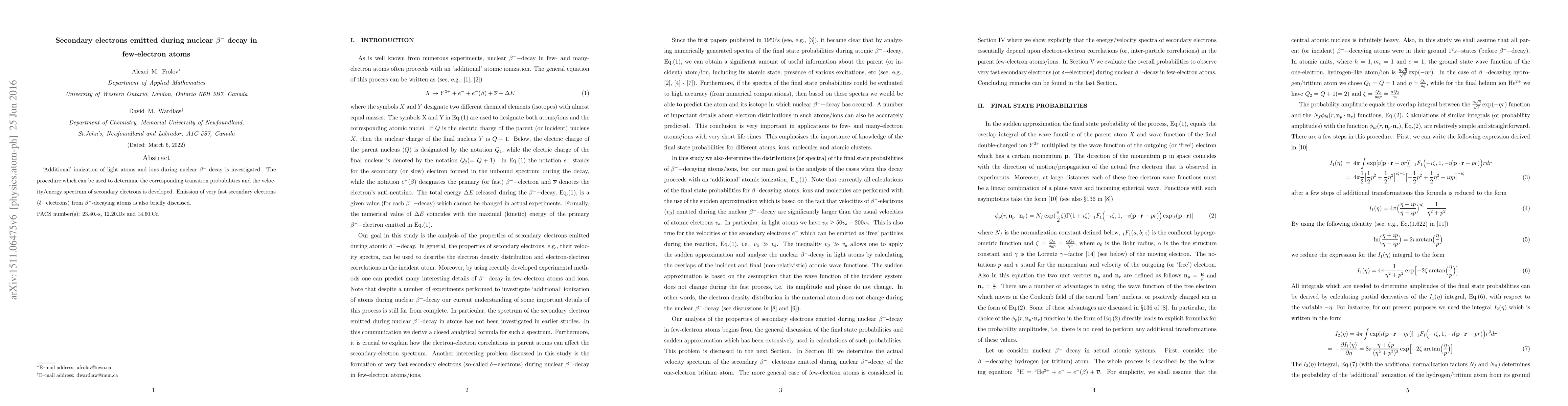 This paper investigates the additional ionization in light atoms and ions during nuclear β⁻ decay, developing a method to determine transition probabilities and the velocity/energy spectrum of secondary electrons, including the emission of very fast δ-electrons.