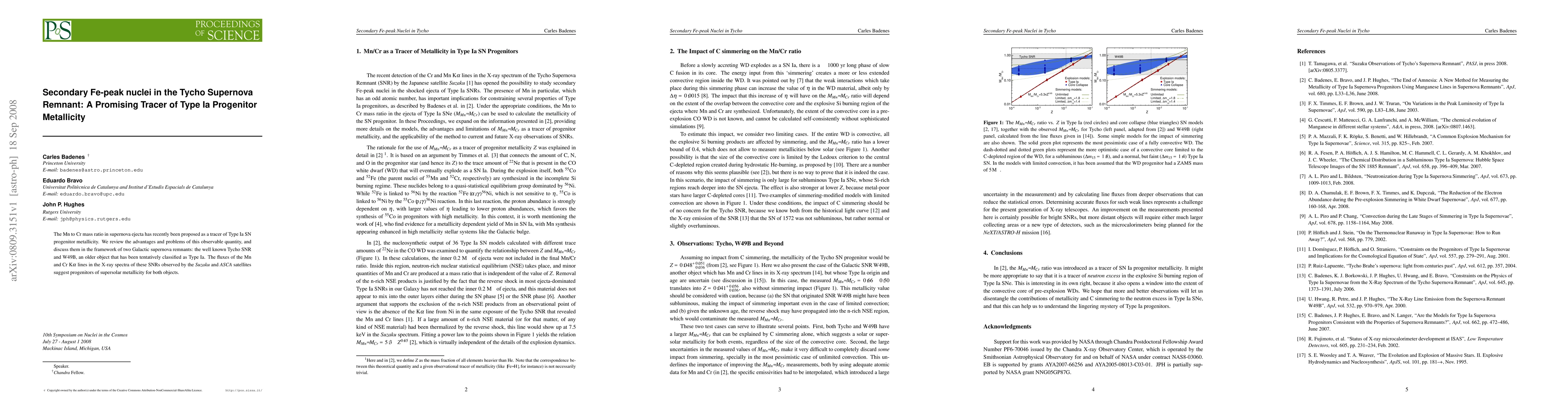 The Mn to Cr mass ratio in supernova ejecta has recently been proposed as a tracer of Type Ia SN progenitor metallicity. We review the advantages and problems of this observable quantity, and discuss them in the framework of two Galactic supernova remnants: the well known Tycho SNR and W49B, an older object that has been tentatively classified as Type Ia. The fluxes of the Mn and Cr Ka lines in the X-ray spectra of these SNRs observed by the Suzaku and ASCA satellites suggest progenitors of supersolar metallicity for both objects.