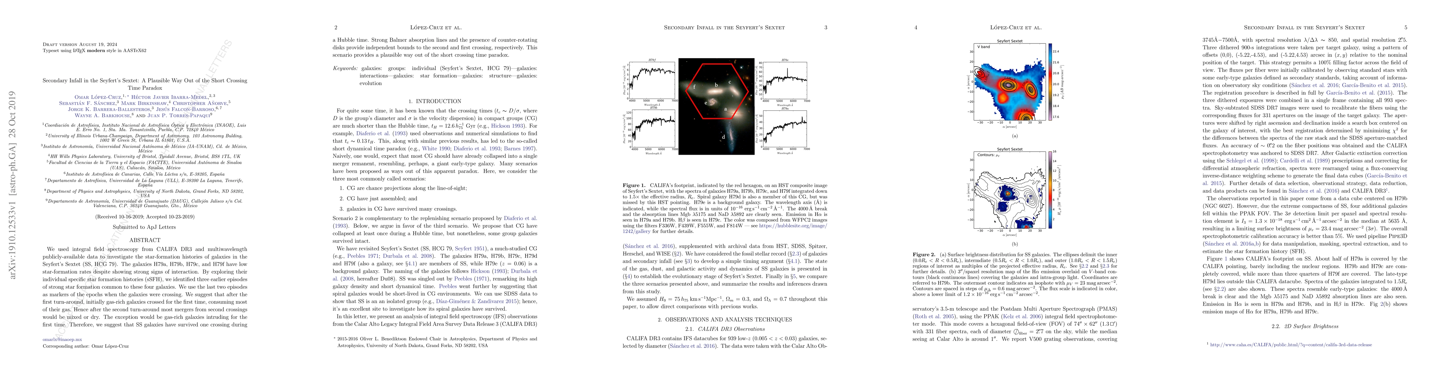 We used integral field spectroscopy from CALIFA DR3 and multiwavelength publicly-available data to investigate the star-formation histories of galaxies in the Seyfert's Sextet (SS, HCG 79). The galaxies H79a, H79b, H79c, and H79f have low star-formation rates despite showing strong signs of interaction. By exploring their individual specific star formation histories (sSFH), we identified three earlier episodes of strong star formation common to these four galaxies. We use the last two episodes as markers of the epochs when the galaxies were crossing. We suggest that after the first turn-around, initially gas-rich galaxies crossed for the first time, consuming most of their gas. Hence after the second turn-around most mergers from second crossings would be mixed or dry. The exception would be gas-rich galaxies intruding for the first time. Therefore, we suggest that SS galaxies have survived one crossing during a Hubble time. Strong Balmer absorption lines and the presence of counter-rotating disks provide independent bounds to the second and first crossing, respectively. This scenario provides a plausible way out of the short crossing time paradox.